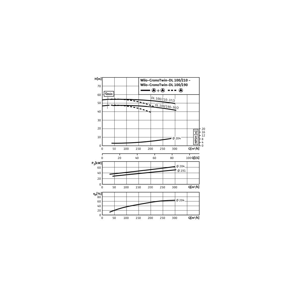 Pompa obiegowa WILO CronoTwin-DL 100/190-30/2-IE3 typu in-line z silnikiem znormalizowanym 50 Hz, moc silnika 30kW 52.2 A 2900 obr/min, wlot Kołnierz DN 100