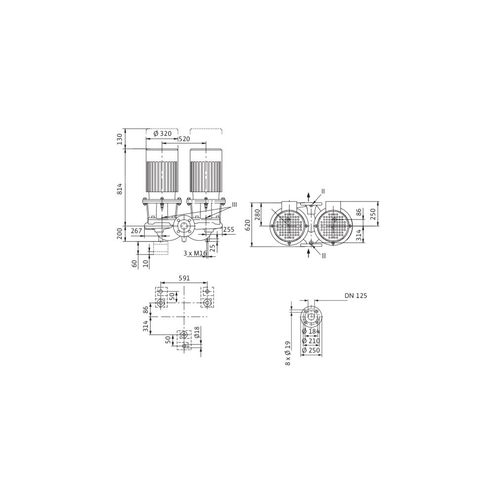 Pompa obiegowa WILO CronoTwin-DL 125/270-15/4-S1 typu in-line z silnikiem znormalizowanym 50 Hz, moc silnika 15kW 29.8 A 1450 obr/min, wlot Kołnierz DN 125