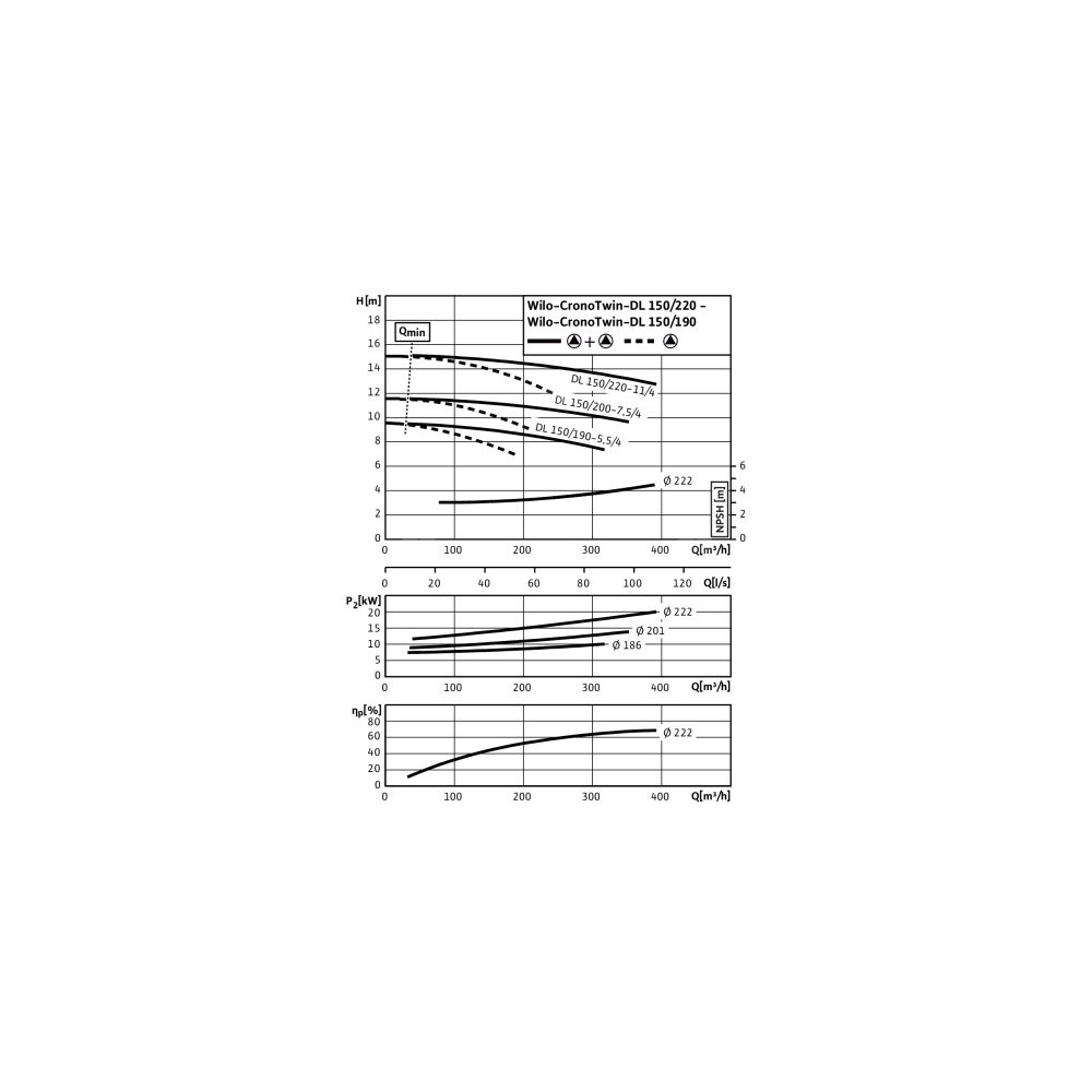Pompa obiegowa WILO CronoTwin-DL 150/220-11/4-IE3 typu in-line z silnikiem znormalizowanym 50 Hz, moc silnika 11kW 22 A 1450 obr/min, wlot Kołnierz DN 150