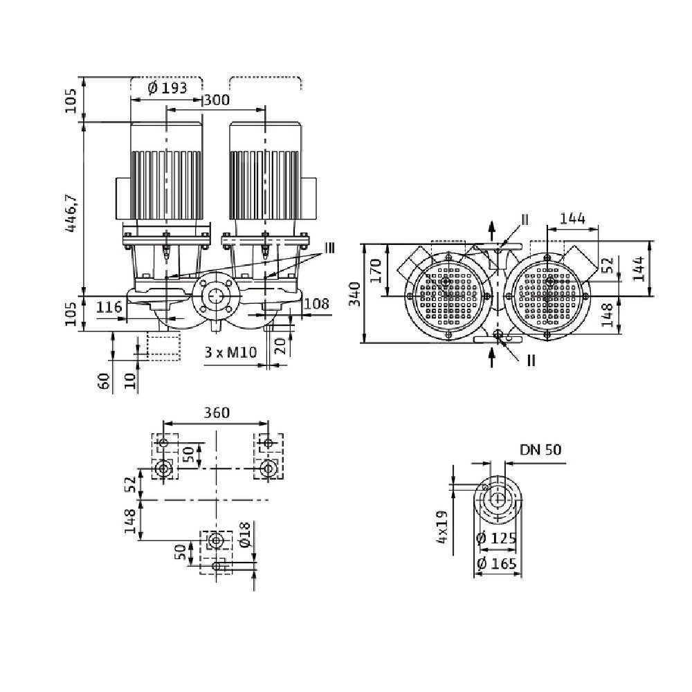 Pompa obiegowa WILO CronoTwin-DL 50/120-2,2/2-IE3 typu in-line z silnikiem znormalizowanym 50 Hz, moc silnika 2.2kW 4.5 A 2900 obr/min, wlot Kołnierz DN 50
