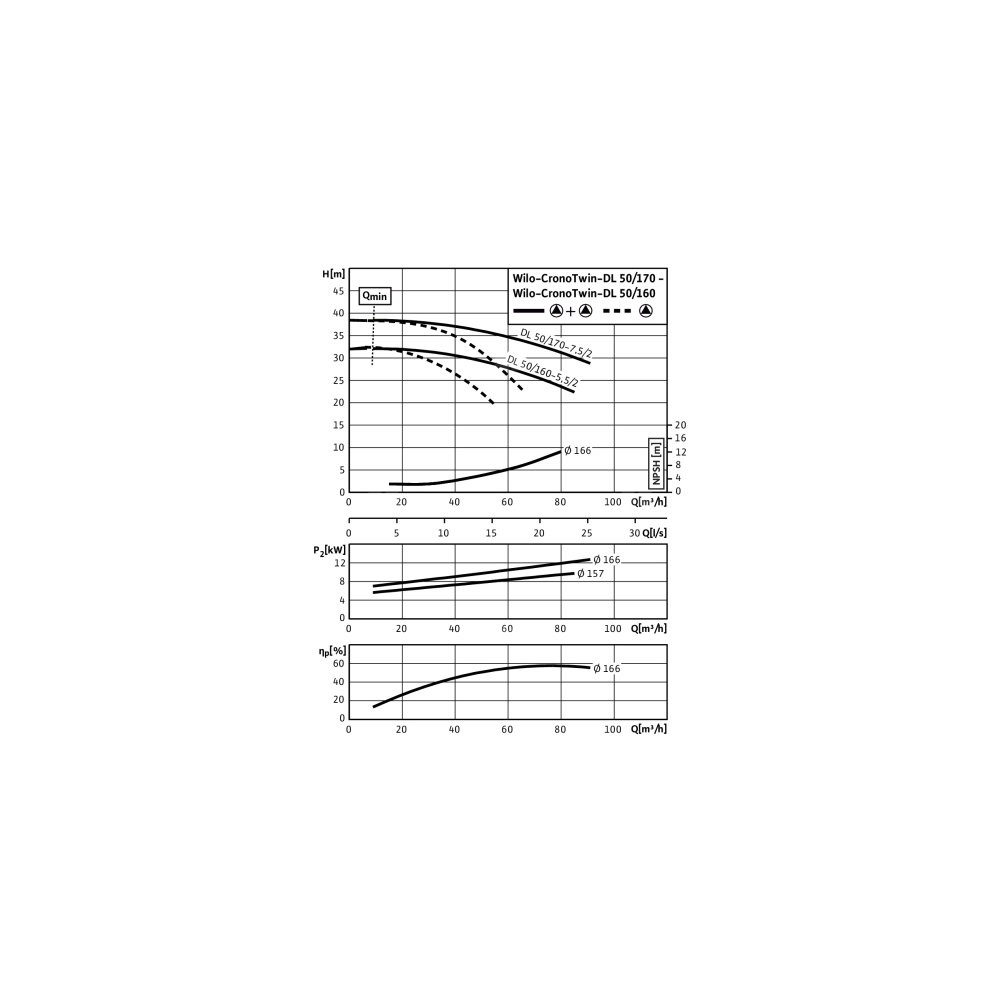Pompa obiegowa WILO CronoTwin-DL 50/170-7,5/2-IE3 typu in-line z silnikiem znormalizowanym 50 Hz, moc silnika 7.5kW 13.3 A 2900 obr/min, wlot Kołnierz DN 50