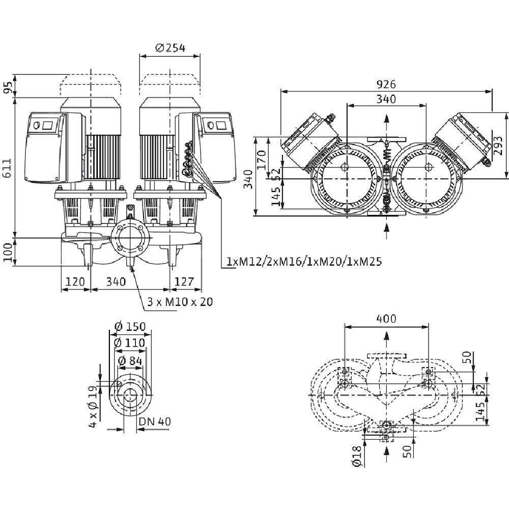 Pompa obiegowa WILO CronoTwin-DL-E 40/170-5,5/2 R1 IE4 typu in-line z silnikiem znormalizowanym 50/60 Hz, moc silnika 5.5kW 10.7 A 2900 obr/min, wlot Kołnierz DN 40