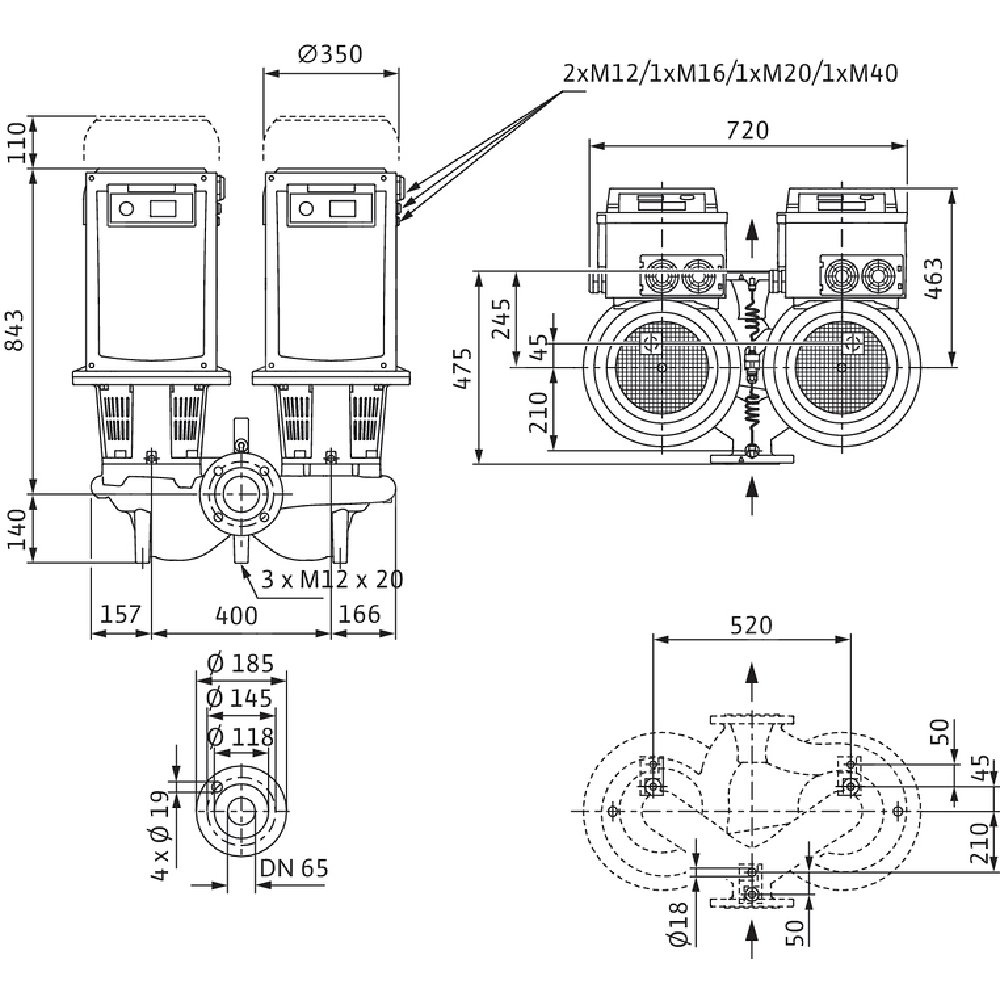 Pompa obiegowa WILO CronoTwin-DL-E 65/220-22/2-S1 typu in-line z silnikiem znormalizowanym 50/60 Hz, moc silnika 22kW 38.4 A 2900 obr/min, wlot Kołnierz DN 65