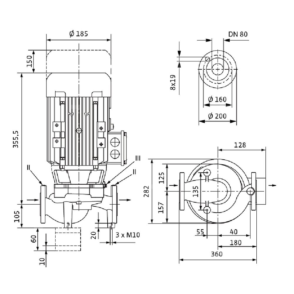 Pompa obiegowa WILO VeroLine-IPL 80/120-0,55/4 typu in-line z silnikiem znormalizowanym 50 Hz, moc silnika 0.55kW 1.45 A 1450 obr/min, wlot Kołnierz DN 80