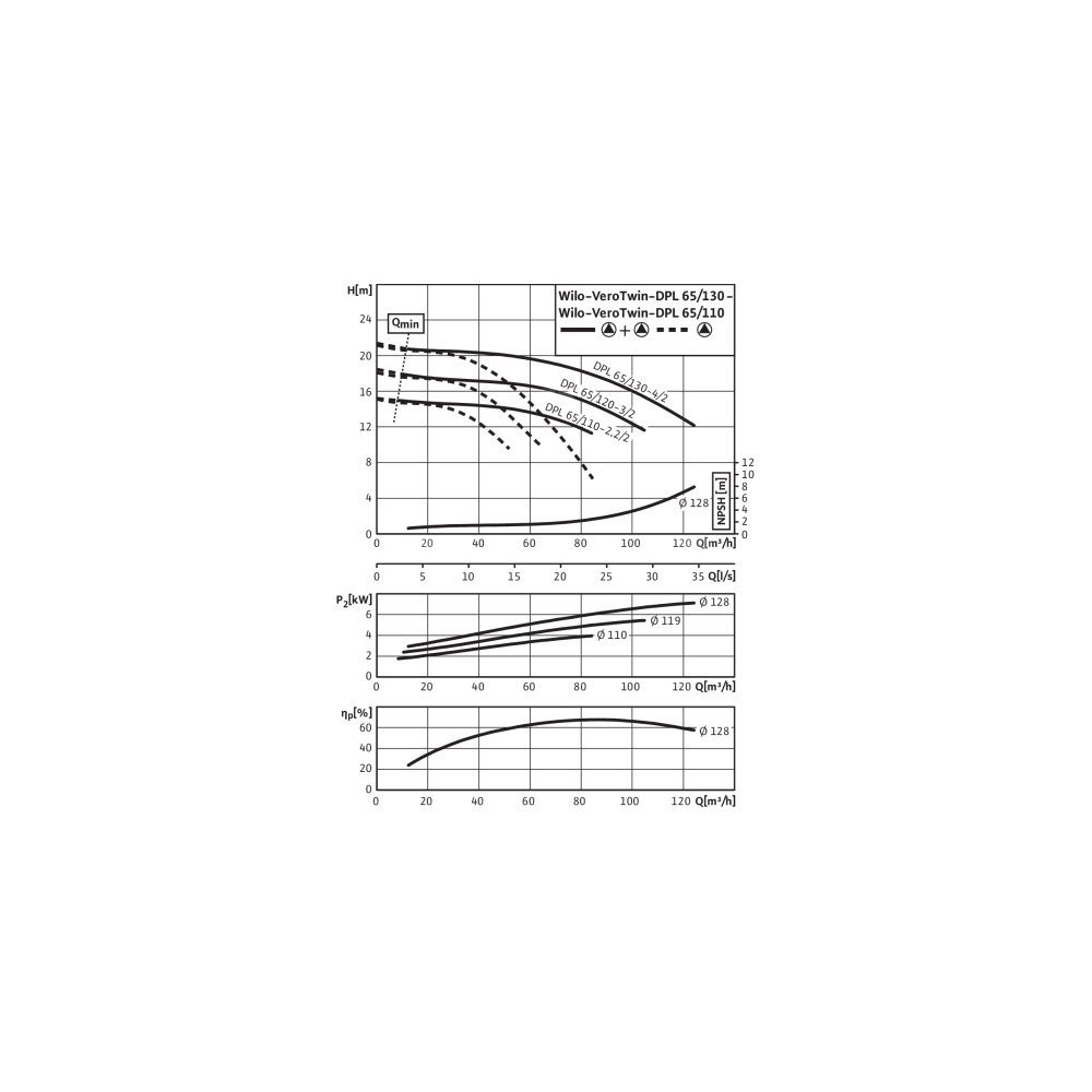 Pompa obiegowa WILO VeroTwin-DPL 65/110-2,2/2-IE3 typu in-line z silnikiem znormalizowanym 50 Hz, moc silnika 2.2kW 4.5 A 2900 obr/min, wlot Kołnierz DN 65