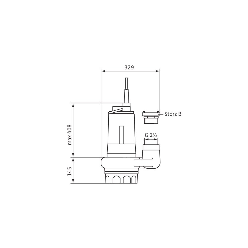 Całkowicie zanurzona pompa zatapialna do wody zanieczyszczonej, pionowe ustawienie mokre, do tłoczenia wody zanieczyszczonej i zawierającej piasek Korpus hydrauliczny i wirnik z żeliwa szarego, korpus silnika z aluminium. Przyłącze tłoczne z pionowym odpływem ciśnieniowym i złączem typu Storz. Samochłodzący silnik w wersji na prąd trójfazowy, z odłączanym kablem zasilającym i wtyczką wg standardu CEE z funkcją zamiany faz. Do uszczelnienia po stronie medium i silnika służy uszczelnienie mechaniczne. Agregat można stosować w podsysającym trybie pracy bez ograniczeń.