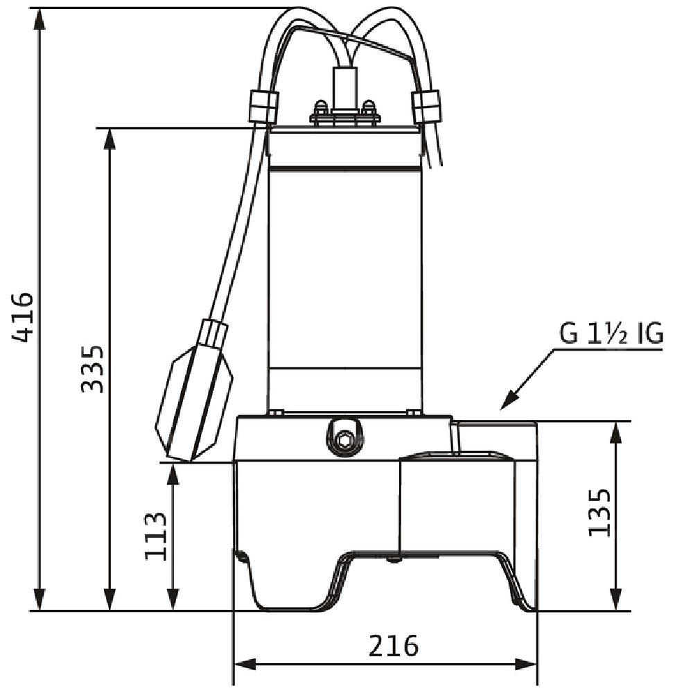 Całkowicie zanurzona pompa zatapialna do ścieków do stacjonarnego i przenośnego ustawienia mokrego, do tłoczenia ścieków bez fekaliów i wody zanieczyszczonej. Korpus hydrauliczny z żeliwa szarego, wirnik z tworzywa sztucznego, korpus silnika ze stali nierdzewnej. Hydraulika z pionowym gwintowanym przyłączem tłocznym i wirnikiem o swobodnym przepływie. Chłodzony powierzchniowo silnik trójfazowy z automatyczną termiczną kontrolą silnika. Kabel zasilający bez wtyczki. Do uszczelnienia po stronie medium służy uszczelnienie mechaniczne, natomiast po stronie silnika pierścień uszczelniający wału. Wszystkie urządzenia bez certyfikatu Ex.