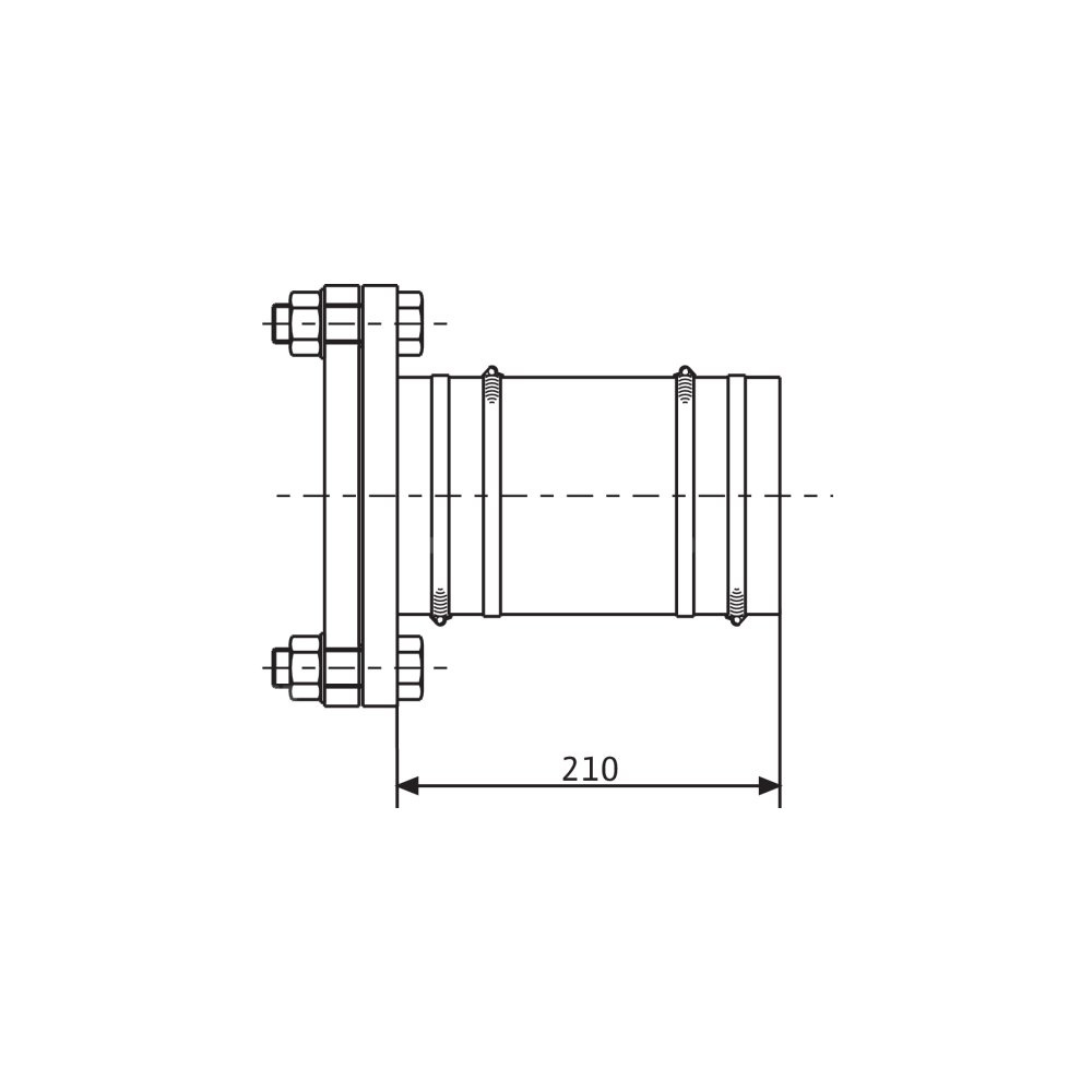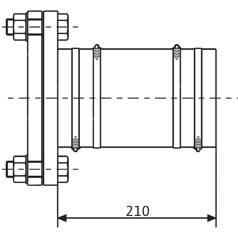 Króciec kołnierzowy do elastycznego podłączania (max. wyrównanie 130 mm) wolnych rurociągów bez kołnierza do rurociągów z kołnierzem Z wężem, opaskami zaciskowymi i osprzętem montażowym