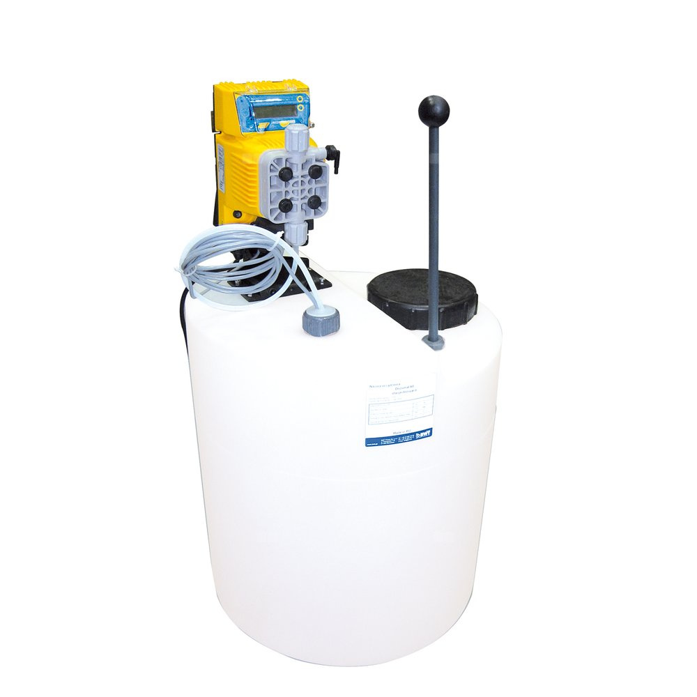 ręcznie za pomocą przełącznika Wył/Zał. Sterowana elektronicznie pompa dozująca AT.MT z optycznym sygnalizatorem opróżnionego zbiornika i ochroną przed pracą pompy na sucho (automatyczne odłączanie). Zbiornik PE z zamykaną pokrywą