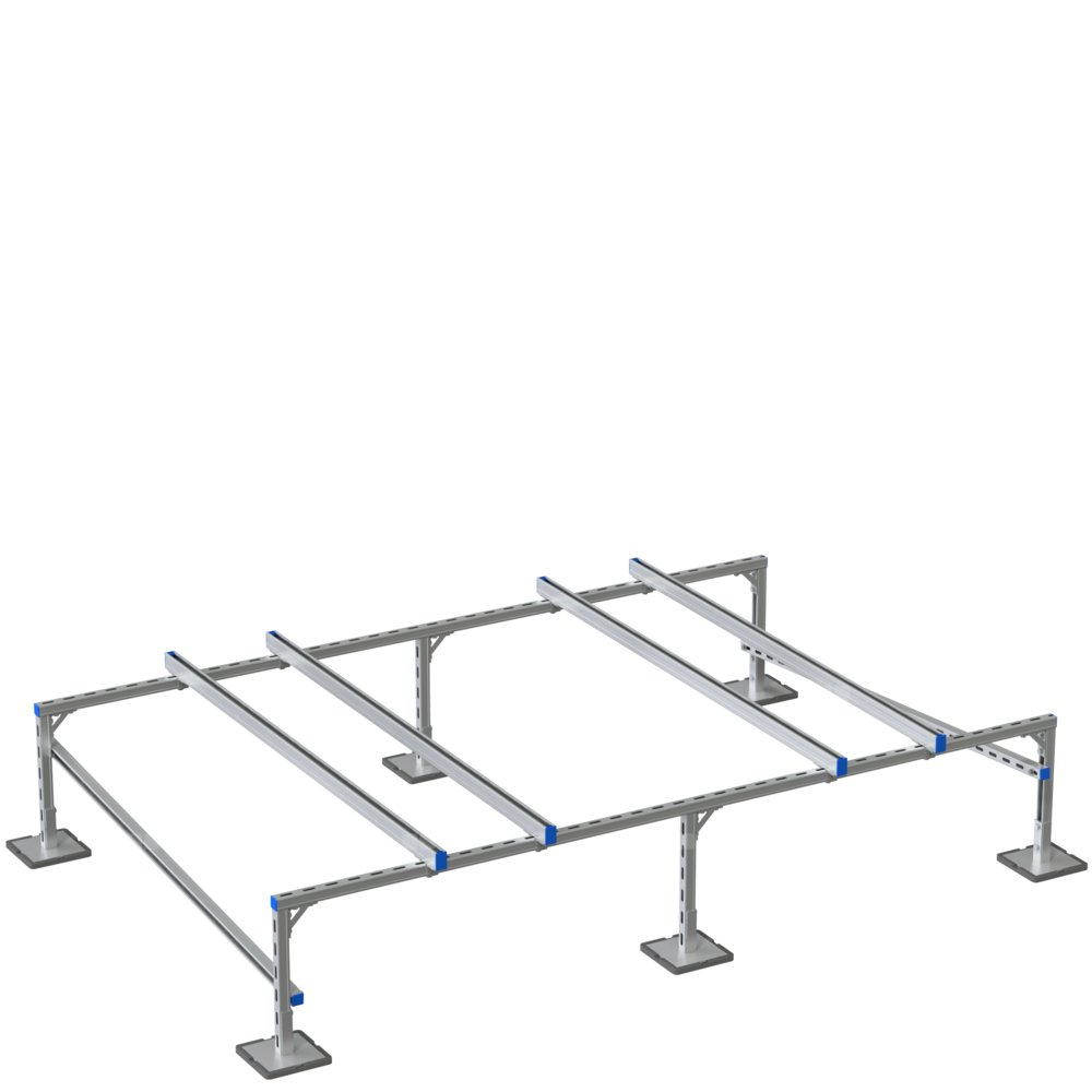 Zastosowanie: instalacje dedykowane dwóm urządzeniom, dla małych obciążeń. Podpora pod urządzenie o maksymalnej wadze do 2x50 kg, II wersja. Uwzględniono siłę wiatru i obciążenie śniegiem oraz równomierny rozkład sił na powierzchni dachu.