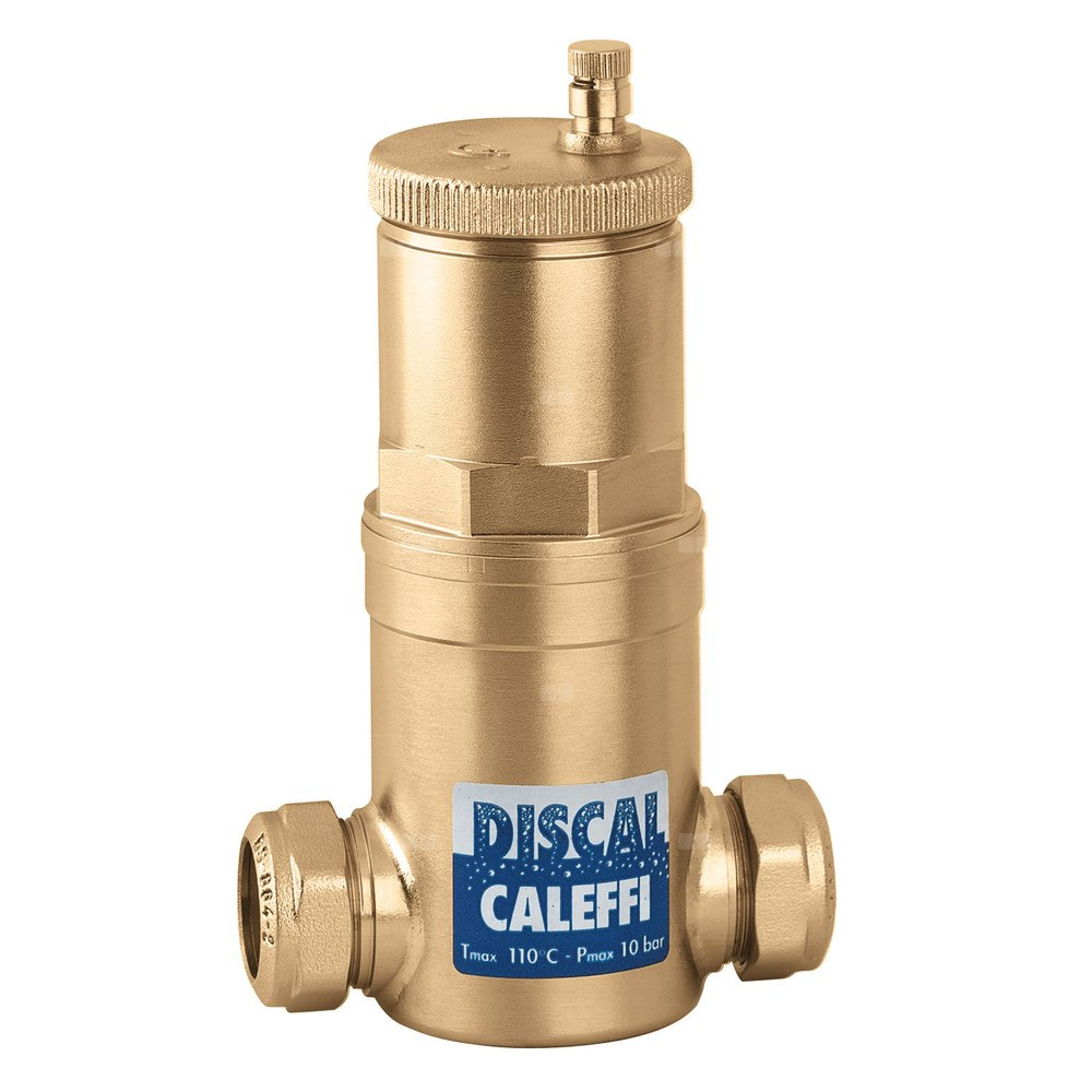 Separator powietrza. Przyłącze: Ø 22, złączka zaciskowa. Maksymalne ciśnienie pracy: 10 bar. Maksymalne ciśnienie upustowe: 10 bar. Zakres temperatury medium: 0–110 °C. Materiał: mosiądz.