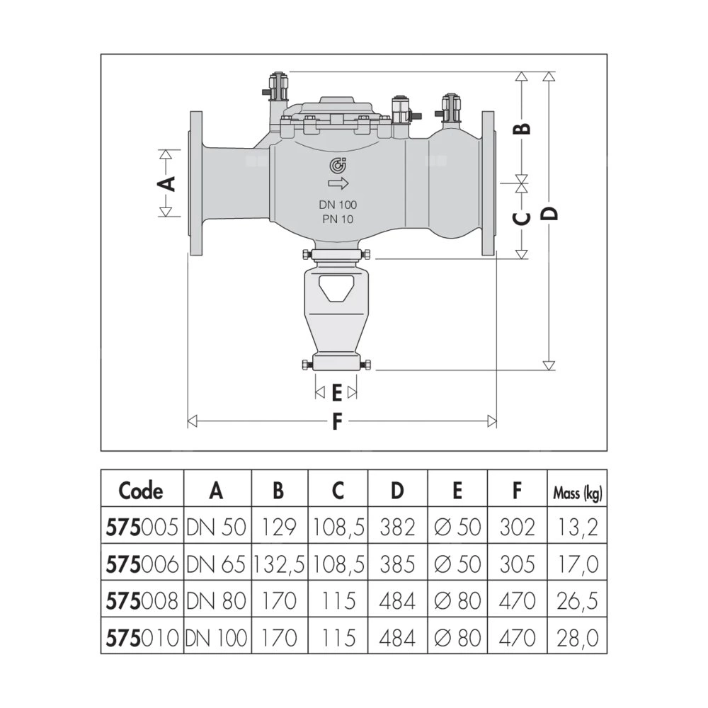 Przed izolatorem przepływów zwrotnych należy zamontować filtr siatkowy serii 577.