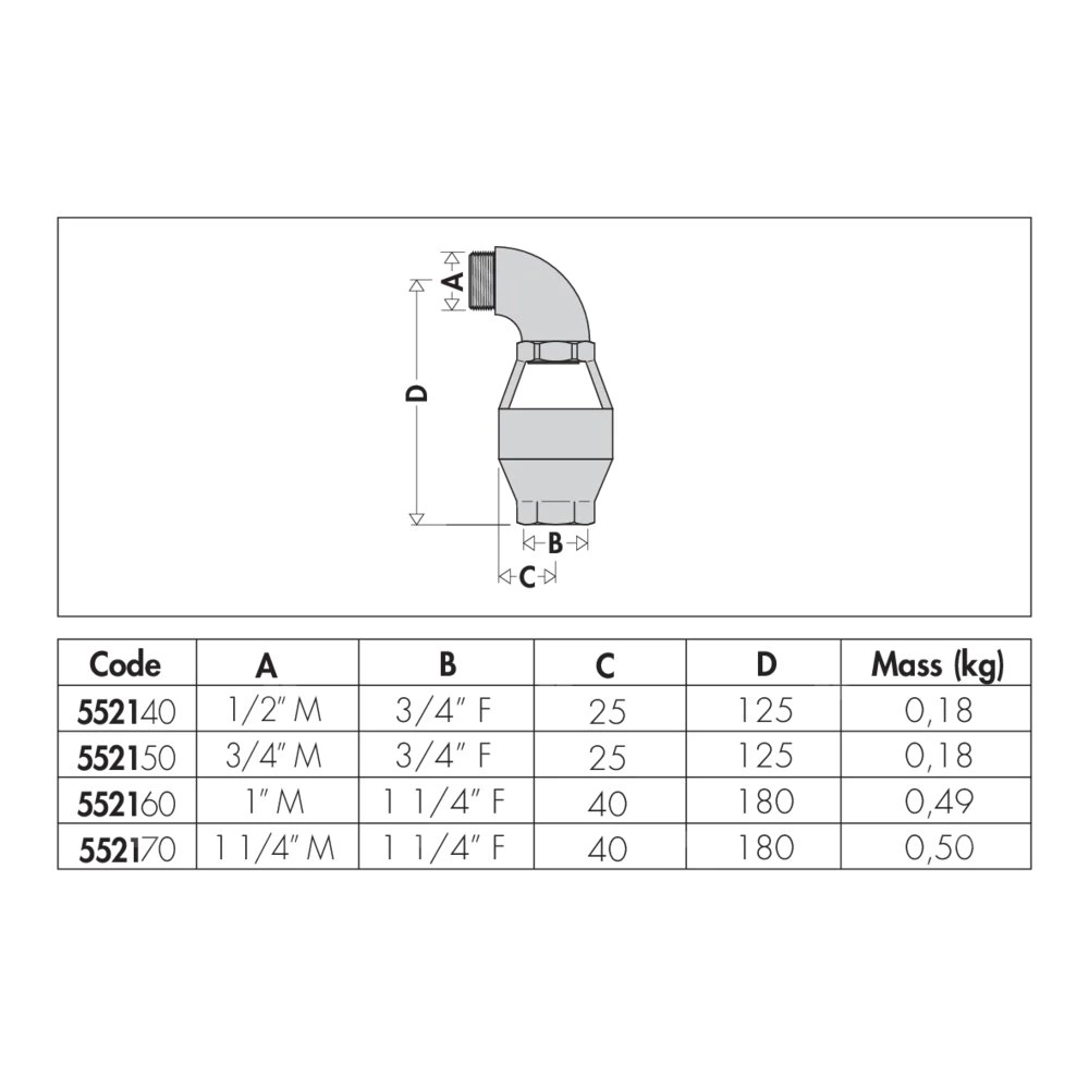 Lejek kolankowy Przyłącze: Ga 1/2" (ISO 228-1) GZ, wlot. Przyłącze: G 3/4" (ISO 228-1) GW, wylot.