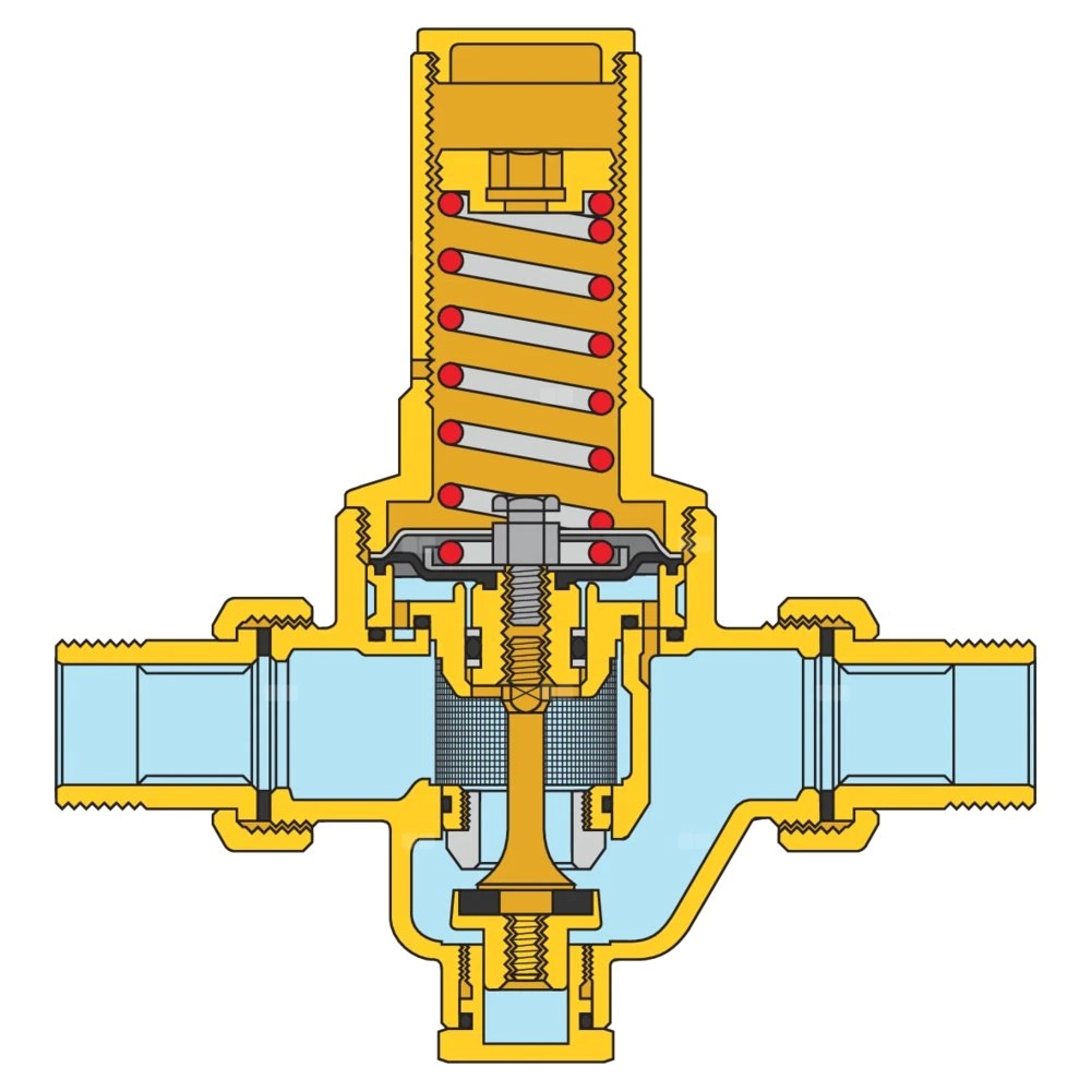 Regulator ciśnienia z wymiennym wkładem. Przyłącza z gwintem zewnętrznym Zgodny z PN EN 1567. Przyłącze: R 1 1/2" (EN 10226-1) GZ, złączka. Zakres temperatury medium: 2–80 °C. Zakres regulowanego ciśnienia: 0,5–6 bar. Materiał: stop mosiądzu odporny na odcynkowanie.