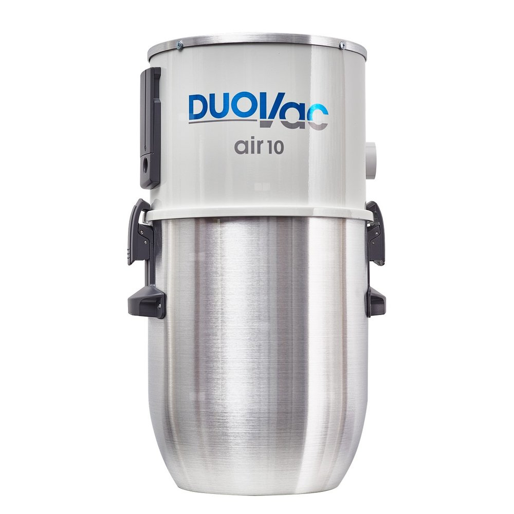 Odkurzacz centralny Duovac Air10 przeznaczony jest do domów o max. powierzchni ok 250m² wraz z instalacją składającą się z max. 7 punktów ssących. Mimo swoich kompaktowych wymiarów posiada duży, lekki i wygodny zbiornik na zanieczyszczenia oraz niezawodny silnik zapewniający optymalną siłę ssania podczas całego okresu użytkowania. Silnik został wyposażony w system łagodne uruchamiania SOFT-START, dzięki czemu wydłuża się jego żywotność. Odkurzacz Duovac Air10 może pracować wraz z wielowarstwowym antyalergicznym workiem jednorazowym o poj. 12l.