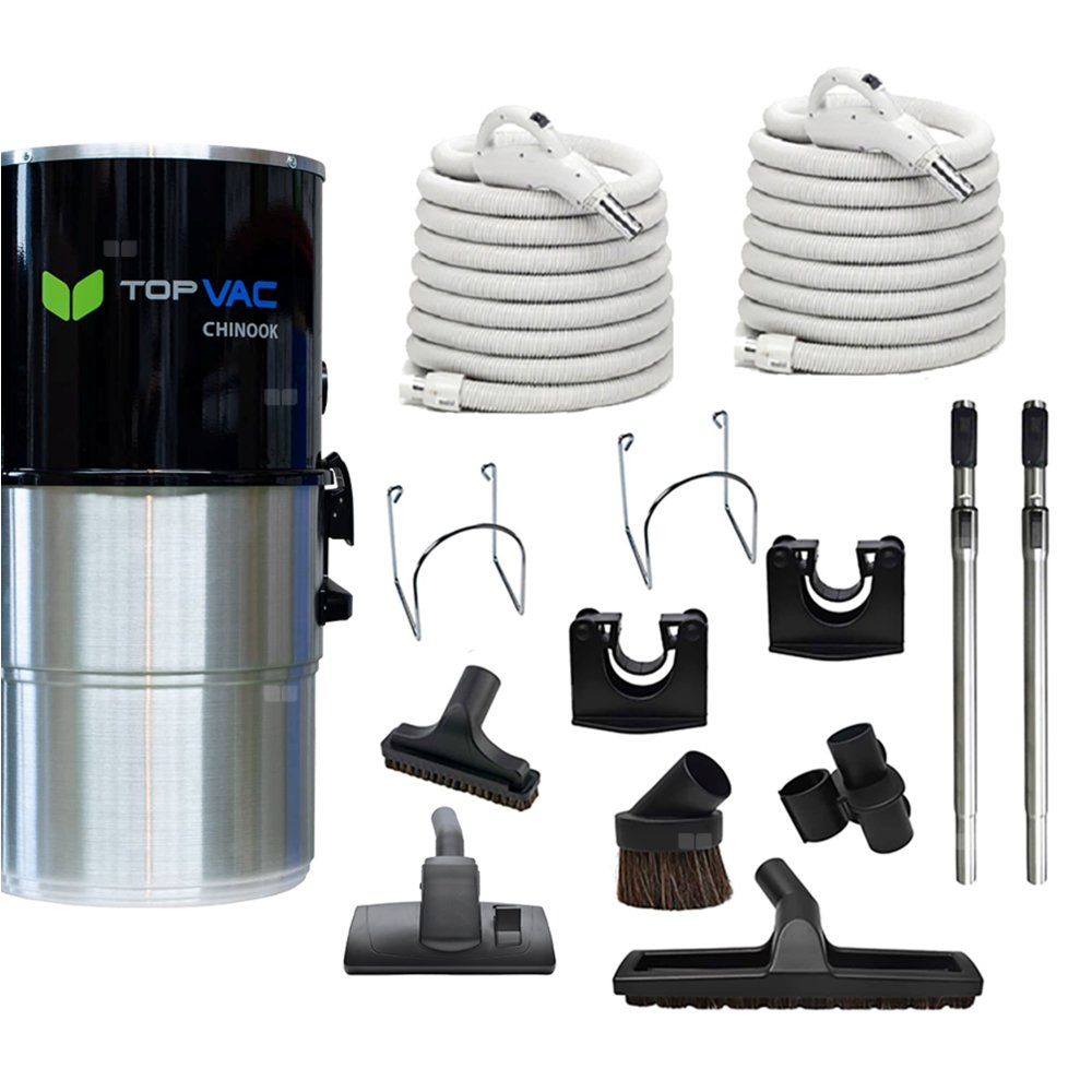 Jednostka centralna TopVac CHINOOK z zestawami do sprzątania z wężem z włącznikiem on/off o dł. 9,1 m i 10,6 m