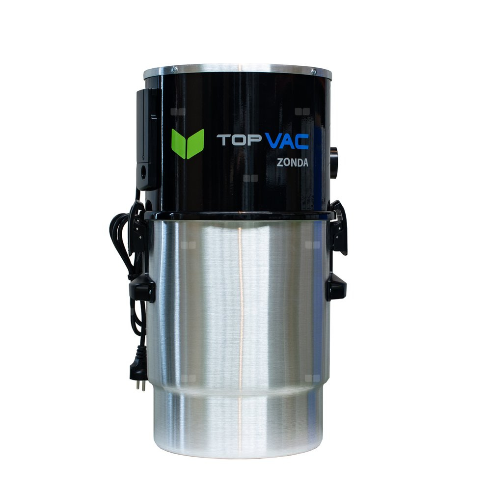 Dzięki swoim kompaktowym wymiarom zmieści się nawet w małej kotłowni czy pomieszczeniu gospodarczym, a wydajny silnik Ametek Lamb zapewni optymalną siłę ssania podczas całego okresu użytkowania. Silnik wyposażony został w system łagodnego uruchamiania SOFT-START, dzięki czemu wydłuża się jego żywotność. Odkurzacz centralny TopVac Zonda bazuje na wydajnej podwójnej filtracji oraz może pracować z wielowarstwowym antyalergicznym workiem jednorazowym o poj. 15l. Luksusowe wykończenia oraz duży i lekki zbiornik aluminiowy o poj. 21l to nie jedyne argumenty tego modelu. Odkurzacz Zonda współpracuje z systemem HAH: wąż ssący bez pokrowca o dł. 9,1m-15,2m, wąż ssący z pokrowcem o dł. 9,1m. Zastąpienie zewnętrznego tłumika hałasu wewnętrznymi kanałami wyciszającymi sprawiło, że urządzenie ZONDA może zostać zamontowane blisko pomieszczeń mieszkalnych, a hałas podczas sprzątania nie będzie przeszkadzał innym domownikom. W przypadku braku możliwości wyprowadzenia wyrzutu powietrza na zewnątrz budynku, rura wylotowa może pozostać w pomieszczeniu, w którym znajduje się odkurzacz. W przypadku tym zaleca się jedynie zastosowanie dodatkowego filtra wylotu HEPA, który rozproszy nam powietrze wyrzucane przez urządzenie ZONDA oraz dodatkowo zmniejszy emitowany przez nią hałas o około 2dB. Gwarancja na odkurzacz wynosi 5 lat. W komplecie worek jednorazowy oraz gumowe elementy do podłączenia z instalacją PVC.
