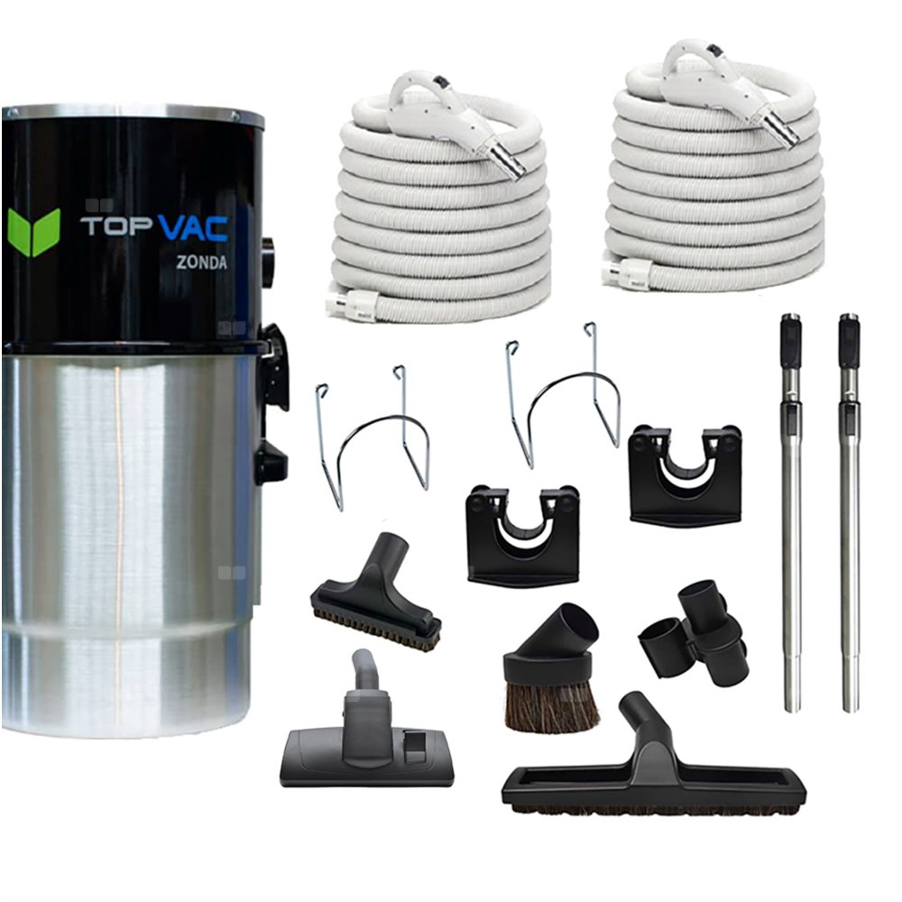 Jednostka centralna TopVac ZONDA z zestawami do sprzątania z wężem z włącznikiem on/off o dł. 9,1 m i 10,6 m