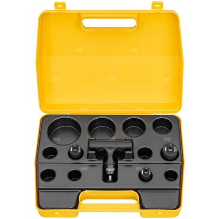 REMS KaliGrat E – jednoczesne kalibrowanie i gratowanie zewnętrzne i wewnętrzne. Uchwyt grzechotkowy z wymiennymi głowicami kalibrującymi i gratującymi, z uchwytem szybkomocującym. Uniwersalny w zastosowaniu do rur zespolonych do kalibracji po procesie cięcia, do gratowania wewnętrznego, aby zapobiec uszkodzeniu o-ringów złączek oraz do gratowania zewnętrznego. Zapewnia łatwą obsługę i szybki posuw dzięki ergonomicznemu uchwytowi z tworzywa sztucznego z funkcją grzechotki. Wytrzymałe wykonanie ze stali trzpienia kalibrującego ze zintegrowanymi ostrzami do gratowania do dużych obciążeń i o dużej żywotności. Trzpień kalibrujący i ostrza do gratowania są przeznaczone do rur o różnych średnicach i grubościach ścianki. Stabilna tuleja do ochrony trzpienia kalibrującego i ostrzy do gratowania przed uszkodzeniem.