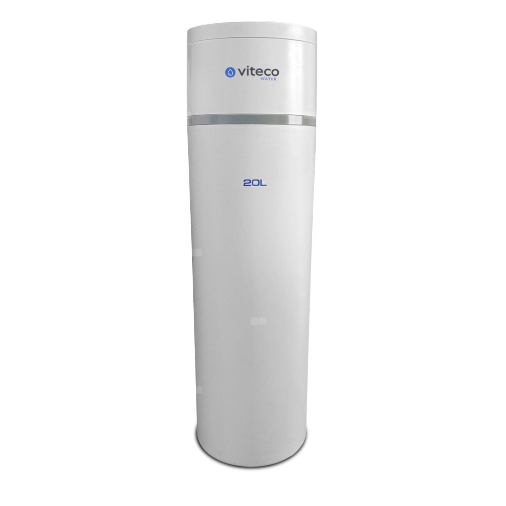 Kompaktowy zmiękczacz wody Viteco SMART RAIN PLUS 20L z kompletnym zestawem filtracji wstępnej, zestawem do mierzenia twardości wody, wężami przyłączeniowymi 60 cm i wężem do popłuczyn 3 mb.