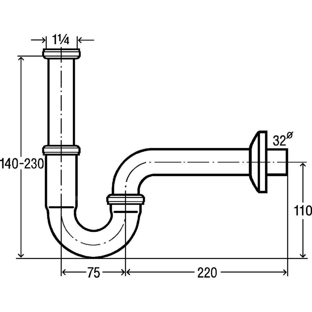 Syfon rurowy, wersja Plus, mosiądz. Wyposażenie: Rura regulowana 120 mm, łuk odpływowy 220 mm wg PN-EN 274