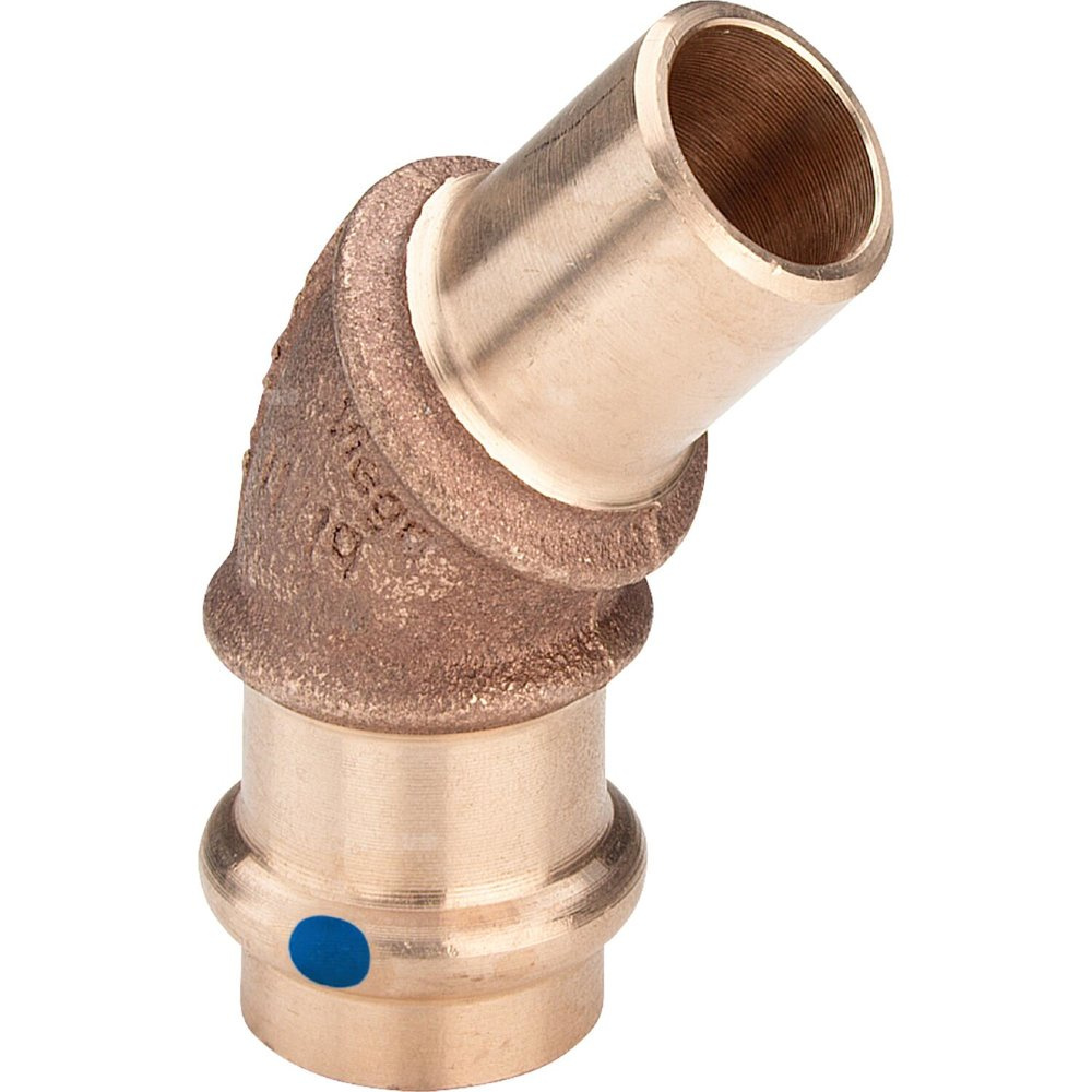 Sanpress LF-łuk 45° z SC‑Contur labs-frei (odtłuszczone) (opakowanie pojedyncze) brąz lub brąz krzemowy końcówka wsuwana, przyłącze zaprasowywane Wyposażenie Element uszczelniający EPDM nr wzoru 2226.1LF