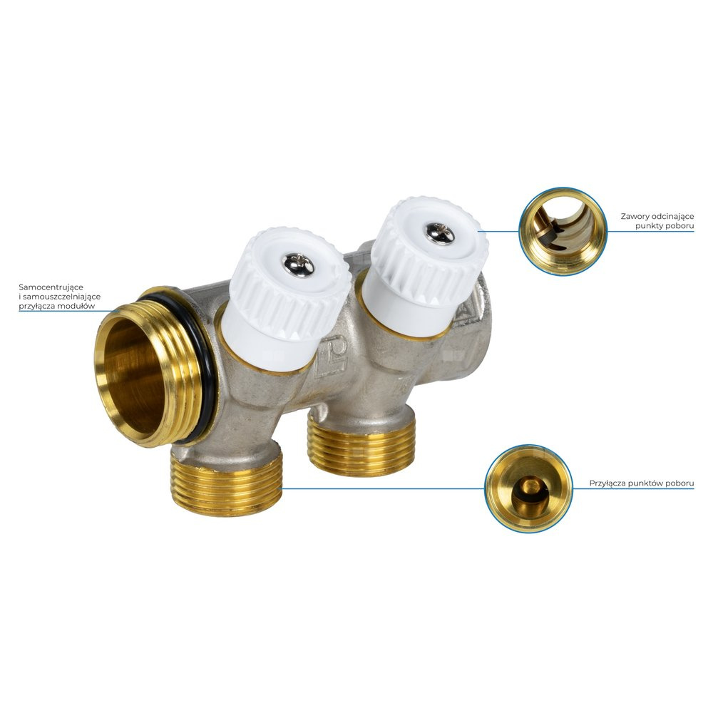 Stosowany w instalacjach wody użytkowej.Montowany do istniejącego rozdzielacza w szafce rozdzielacza.