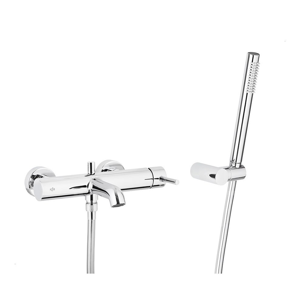 Bateria moza wannowa ścienna, pozioma, chrom z kompletem natryskowym punktowym premium