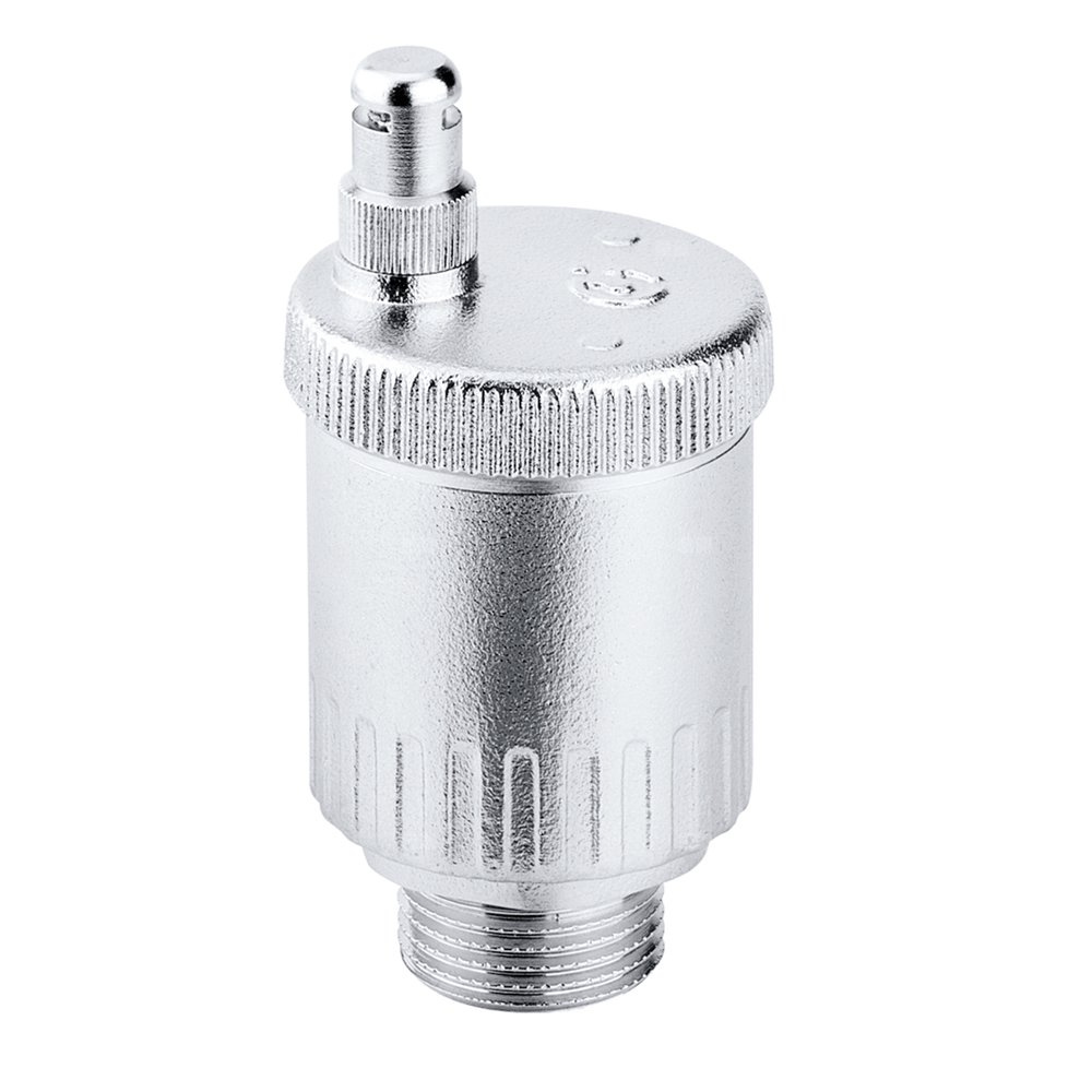 Odpowietrznik automatyczny z zamknięciem higroskopijnym. Chromowany. Przyłącze: G 1" A (ISO 228-1) GZ. Maksymalne ciśnienie pracy: 10 bar. Maksymalne ciśnienie upustowe: 2,5 bar. Zakres temperatury medium: 0–120 °C. Wykończenie: chromowane. Materiał: mosiądz.