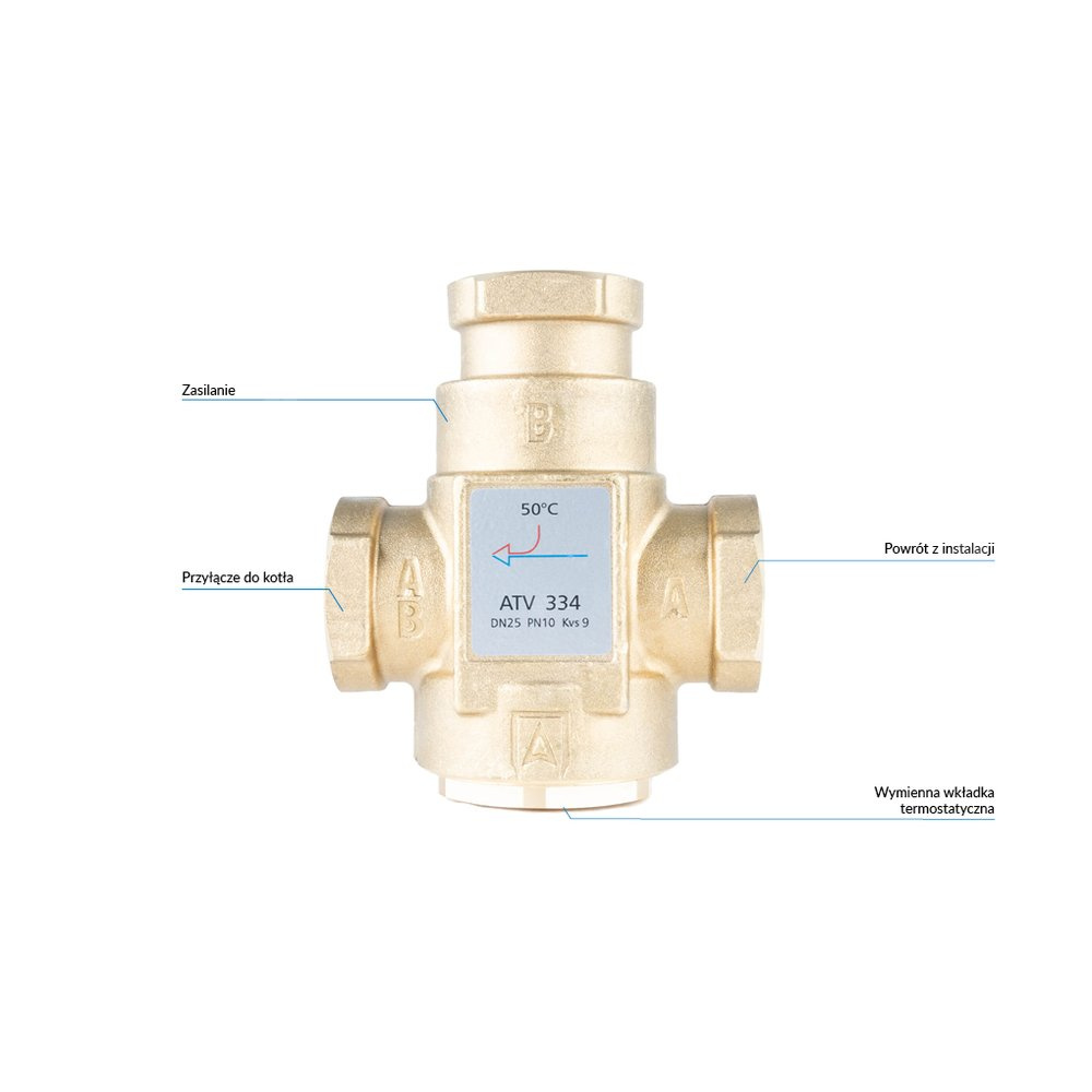 Stosowany w instalacjach grzewczych z kotłami stałopalnymi, zalecany szczególnie do instalacji z buforami ciepła.Montowany na powrocie z instalacji.