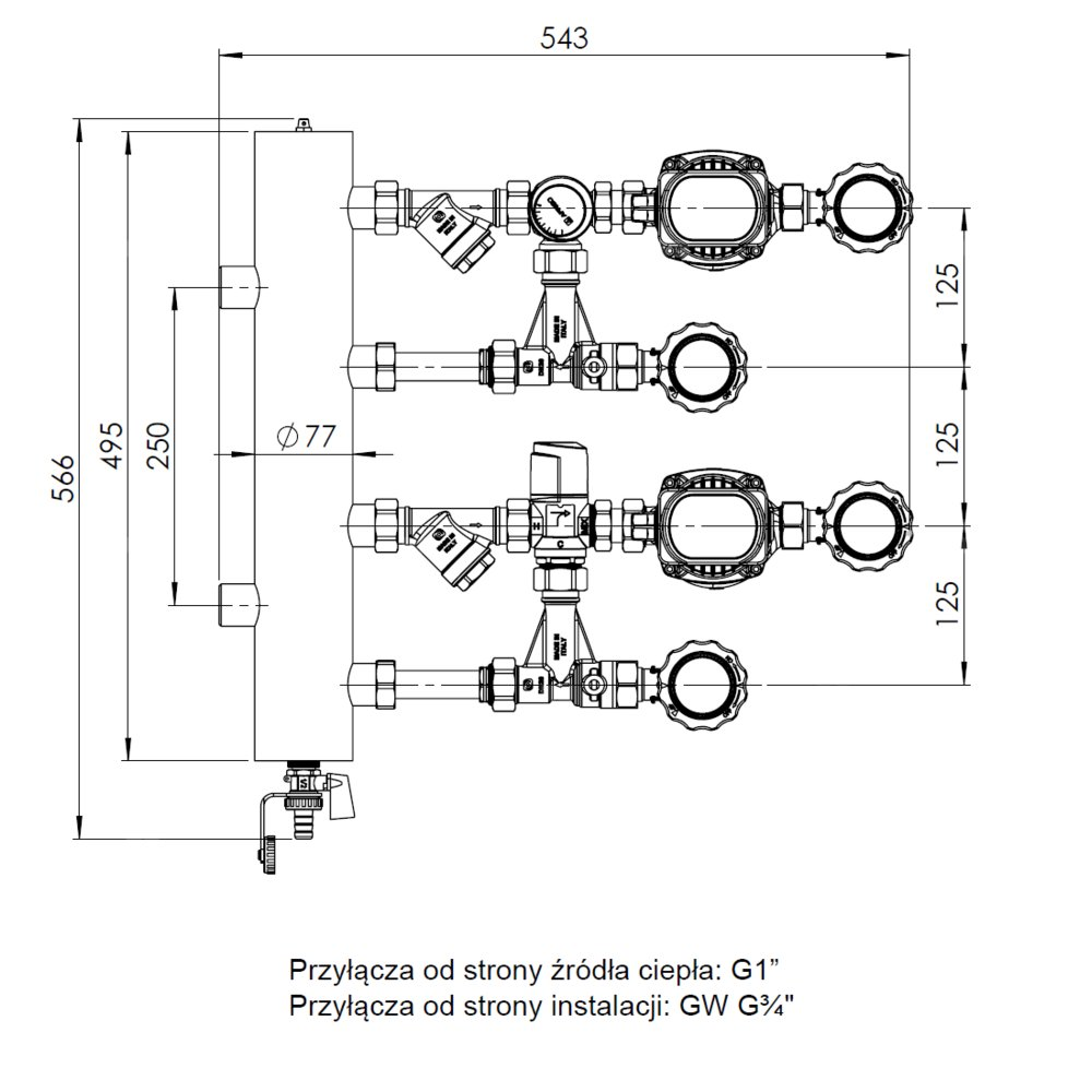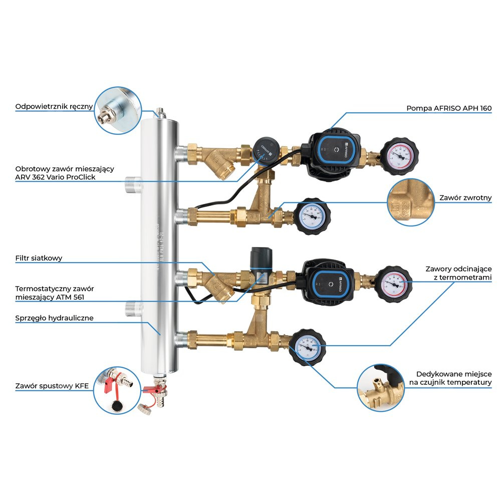 Pozwala na przyłączenie dwóch obiegów grzewczych/chłodzących.