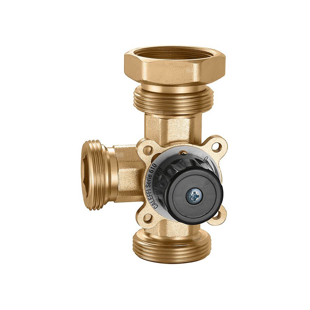 Trójdrożny zawór mieszający, gwintowany Dla grup z serii 167 Maksymalne ciśnienie pracy: 10 bar. Zakres temperatury medium: 5–110 °C. PN (Ciśnienie nominalne): PN 10. △p max.: 1 bar. Kv: 6,3 m³/h. Materiał: mosiądz.