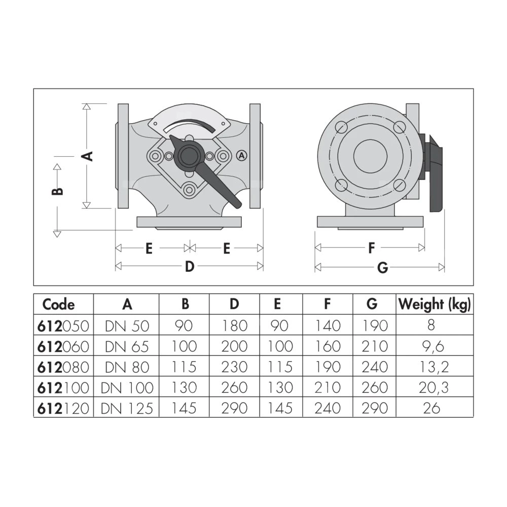 Zawór trójdrogowy mieszający. Przyłącza kołnierzowe. Współpraca z przeciwkołnierzem EN 1092-1. Do stosowania w ciężkich warunkach. Ustawienie fabryczne: zasilanie ze źródła ciepła z lewej strony. Przyłącze: DN 100 (EN 1092-1) PN 6. Maksymalne ciśnienie pracy: 6 bar. Zakres temperatury medium: 2–110 °C. PN (Ciśnienie nominalne): PN 6. Kv: 172 m³/h.