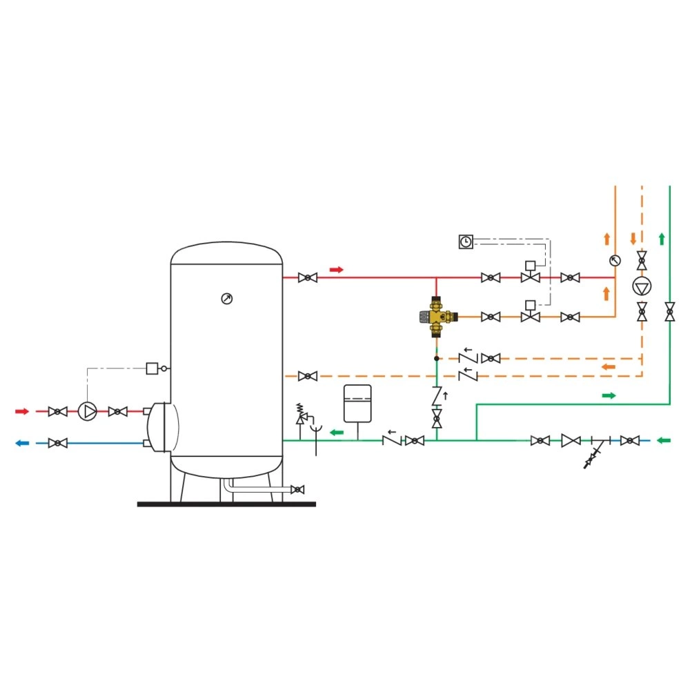 Regulowany termostatyczny zawór mieszający do systemów scentralizowanych. Korpus wykonany ze stopu odpornego na wypłukiwanie cyn