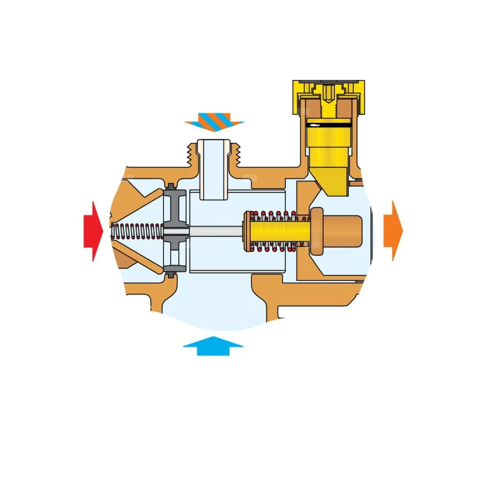 Regulowany termostatyczny zawór mieszający. Przyłącza kołnierzowe. Z przeciwkołnierzem zgodnym z normą EN 1092-1. Przyłącze: DN 80 (EN 1092-1) PN 10. Maksymalne ciśnienie pracy: 10 bar. Zakres temperatury medium: 2–90 °C. Zakres regulacji temperatury: 36–53 °C. Nastawa: 48 °C. PN (Ciśnienie nominalne): PN 10. Kv: 43 m³/h. Materiał: brąz.