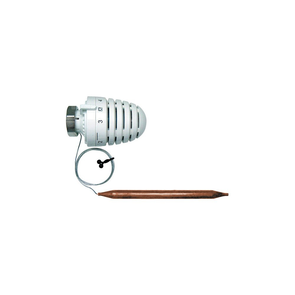 Głowica termostatyczna HERZ-Design "H" z czujnikiem powierzchniowym składająca się z termostatu, kapilary i czujnika powierzchniowego. Zakres nastaw 40 - 70 °C. Długość kapilary 0,5 m.