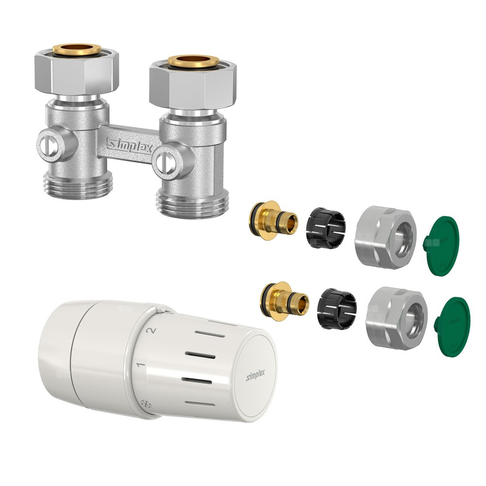 ZESTAW Z GŁOWICĄ TC-S3 PROSTY (GŁOWICA NA ZACISK, DWURUROWY BLOK KURK“W PROSTY MD1/50, NYPLE 1"" X 3"", KOMPLET ZŁĄCZA 16X2,0)
