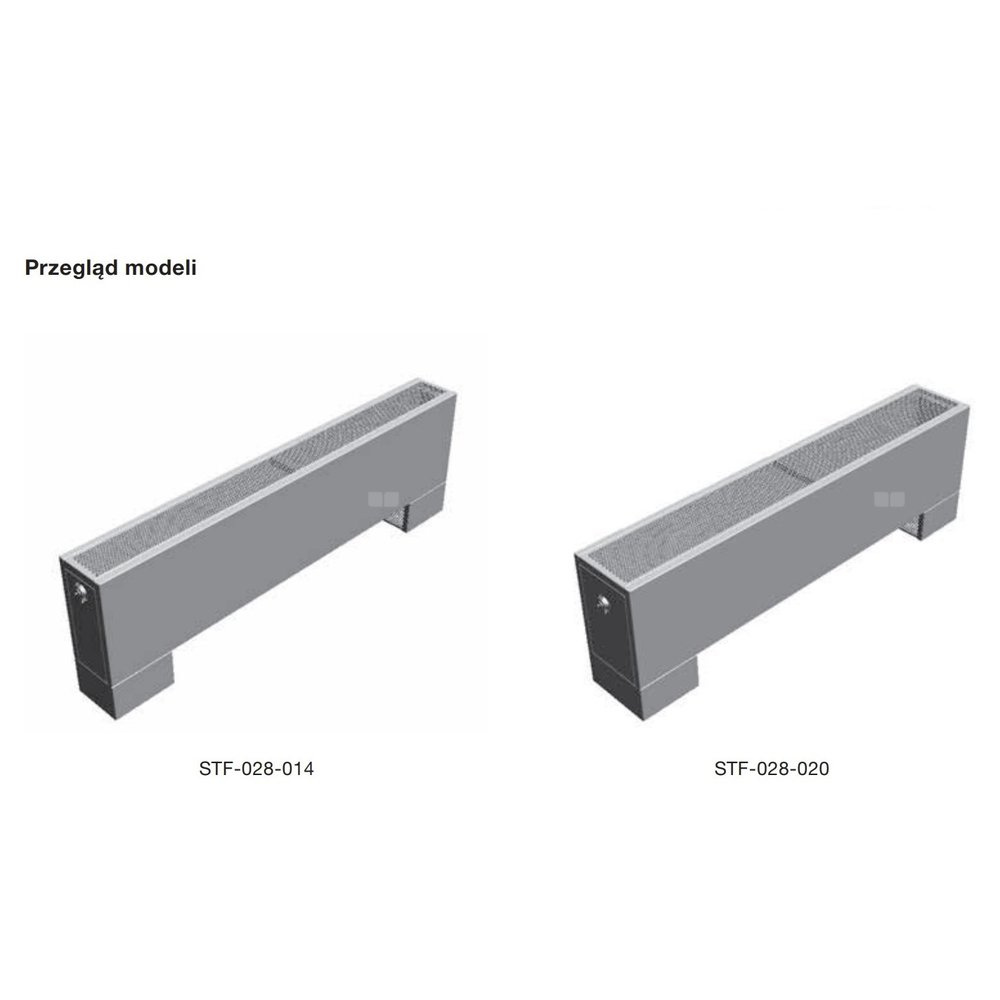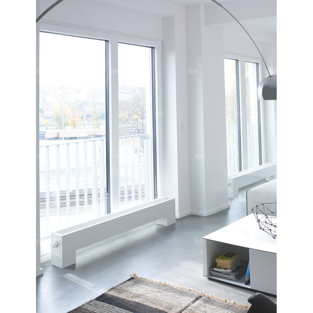 Konwektor stojący z cichym wbudowanym wentylatorem, konsola maskująca z niewidocznymi przyłączami, grzejnik odwracalny, duża wydajność cieplna