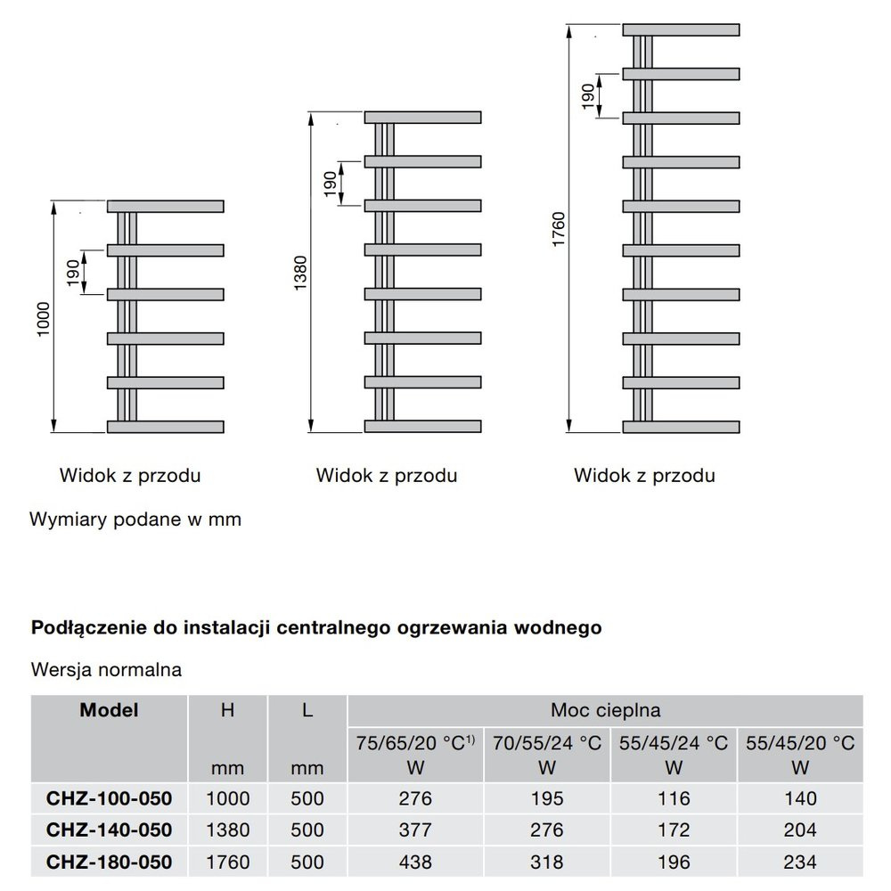 Grzejnik drabinkowy ZEHNDER Chime, wym. 1380 x 500 mm, kolor inox, moc 377W