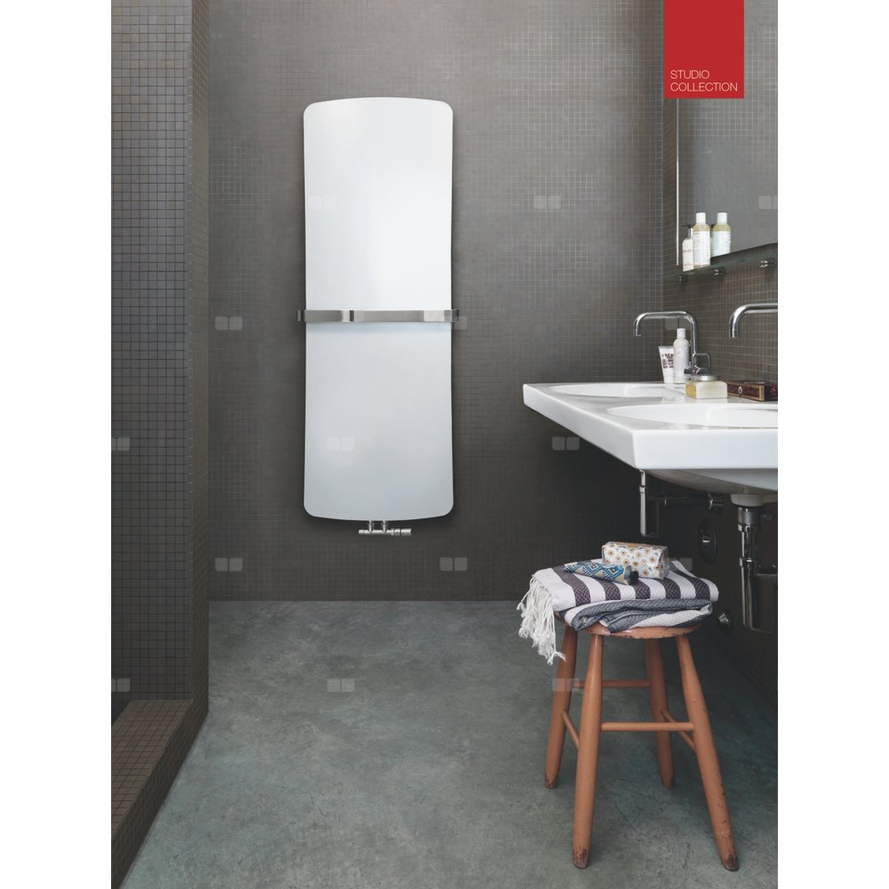Wersja łazienkowa Folio Belt wyposażona – w zależności od wysokości – w jeden lub dwa chromowane uchwyty na ręczniki,