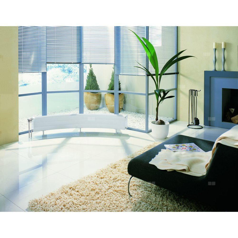 Minimalistyczny konwektor – skuteczny sposób na zredukowanie strat ciepła spowodowanych dużymi przeszkleniami.