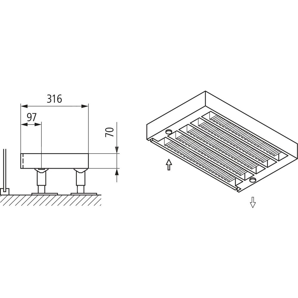Specjalna osłona przeciw wypromieniowaniu ciepła montowana jest na tylnej ścianie konwektora. Uniemożliwia ona promieniowanie ciepłego powietrza w stronę przeszklonej powierzchni i dzięki temu zmniejsza stratę ciepła aż do 80%.