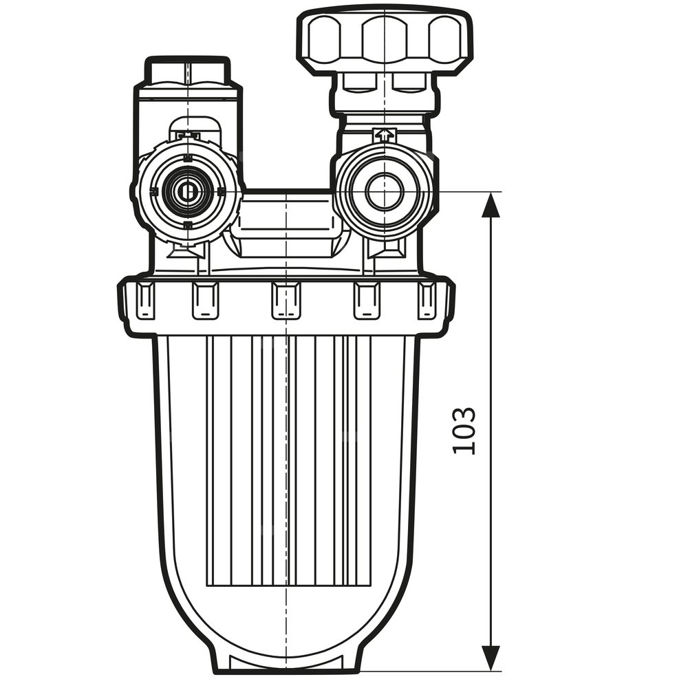 Filtr olejowy AFRISO R500Si jednorurowy z powrotem fi 3/8'' x 3/8'' GW x GZ, z wkładem plastikowym, maks. przepływ 210 l/h
