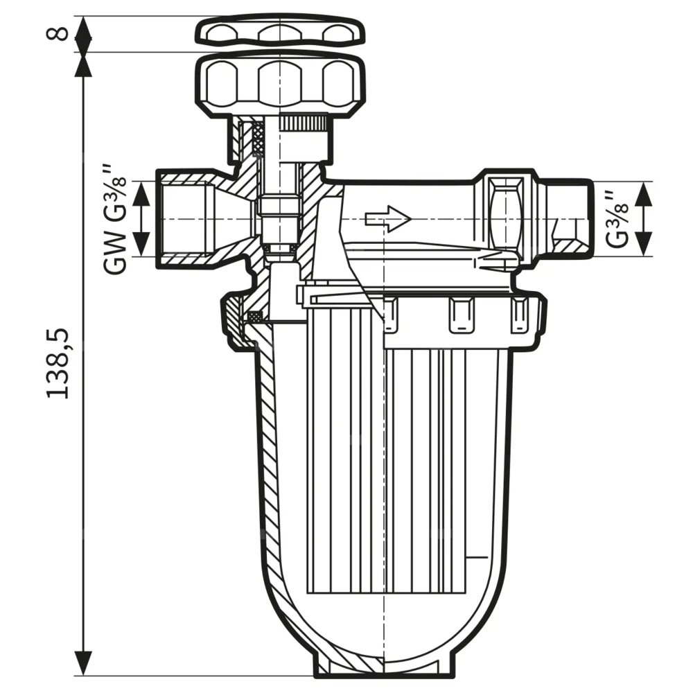 Filtr olejowy AFRISO V500Si jednorurowy fi 3/8'' x 3/8'' GW x GZ, z wkładem plastikowym, maks. przepływ 250 l/h