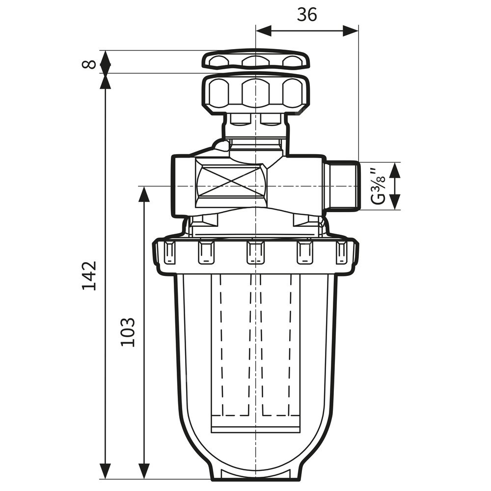 Filtr olejowy AFRISO Z500St dwururowy fi 3/8'' x 3/8'' GW x GZ, z wkładem stalowym, maks. przepływ 220 l/h