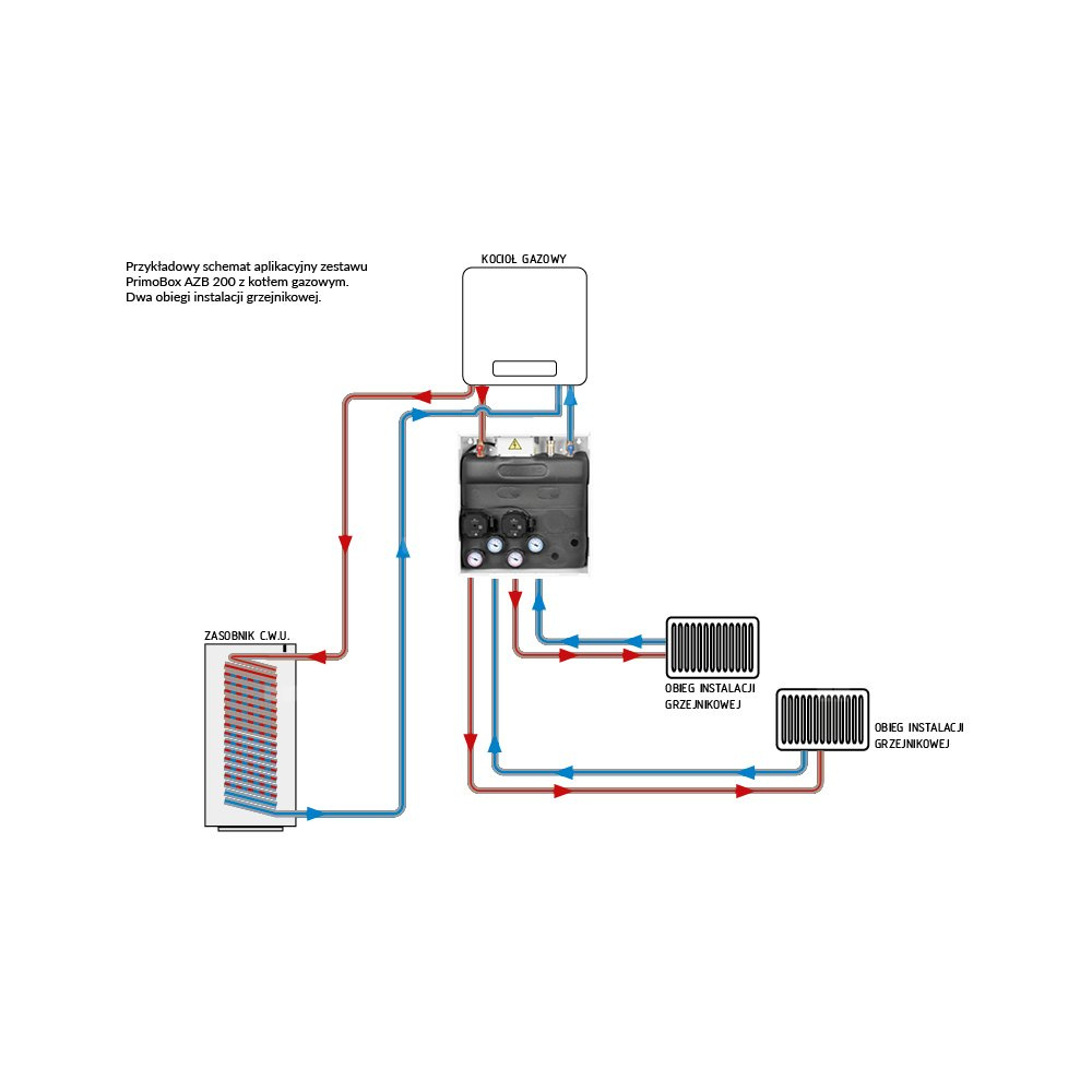 - Opcjonalnie można połączyć go z zestawem separacyjnym **PrimoBox AHB** i stworzyć kolumnę grzewczą łączącą 2 źródła ciepła.