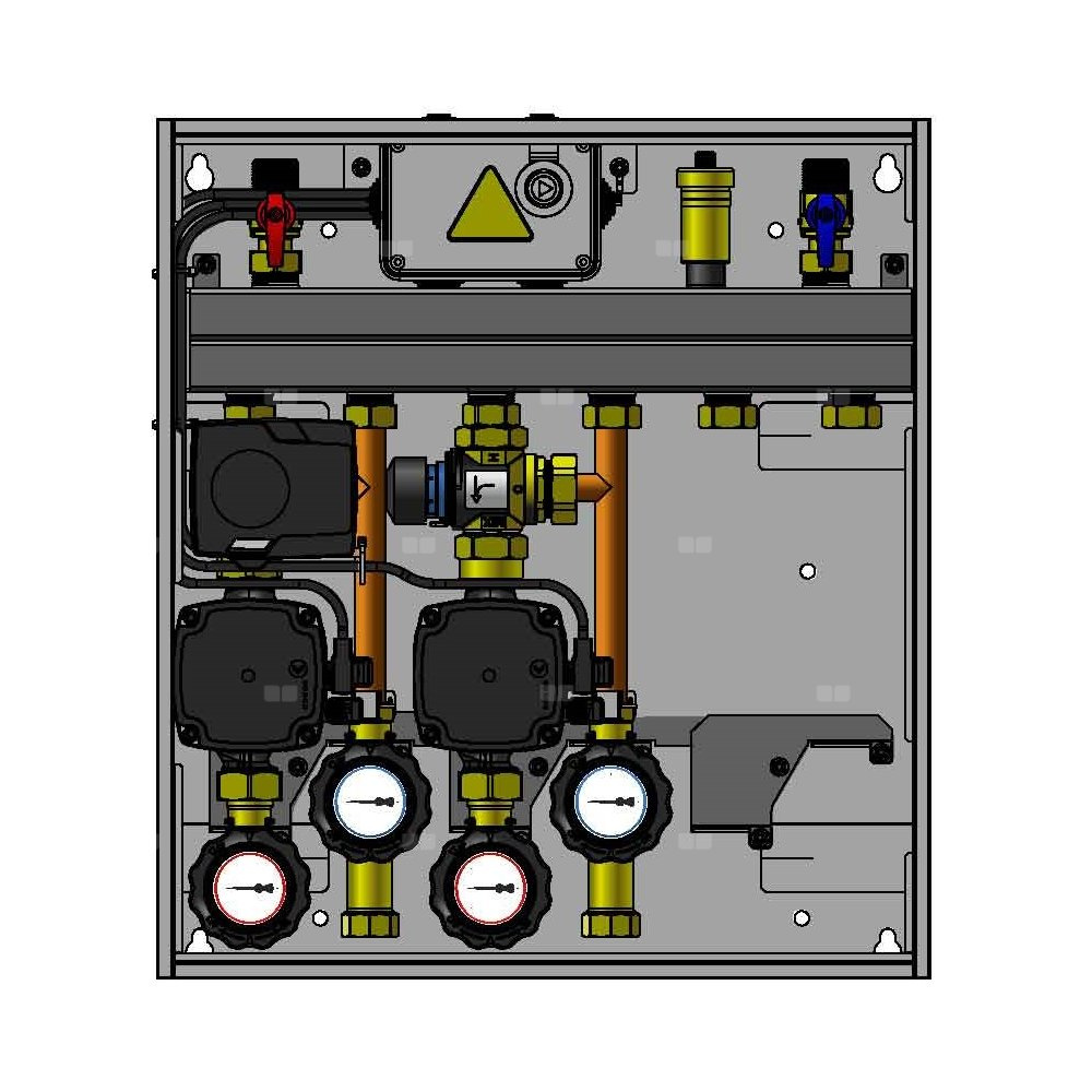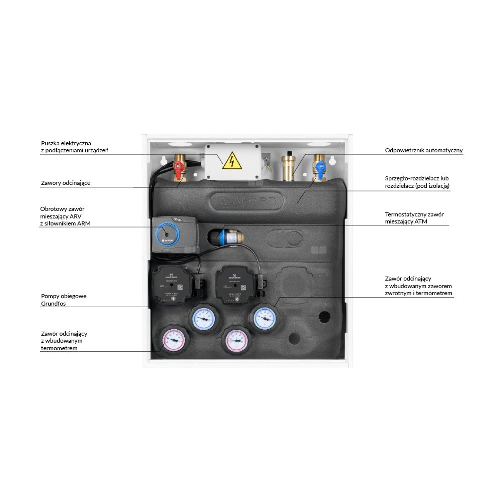 Wyposażony w pompy Grundfos UPm³, zawór obrotowy z siłownikiem ARM 141 oraz zawór termostatyczny ATM 561.