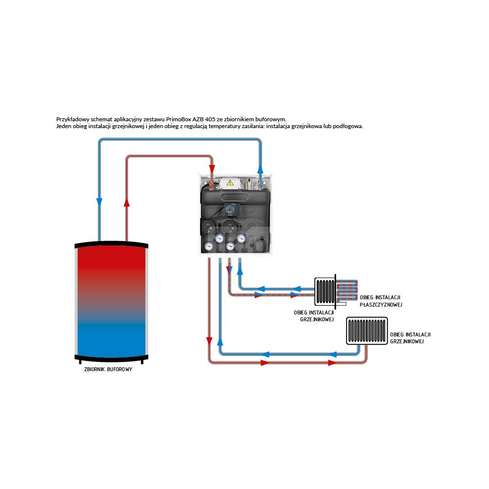 Wyposażony w pompy Grundfos UPm³ oraz zawór obrotowy z siłownikiem ARM 141