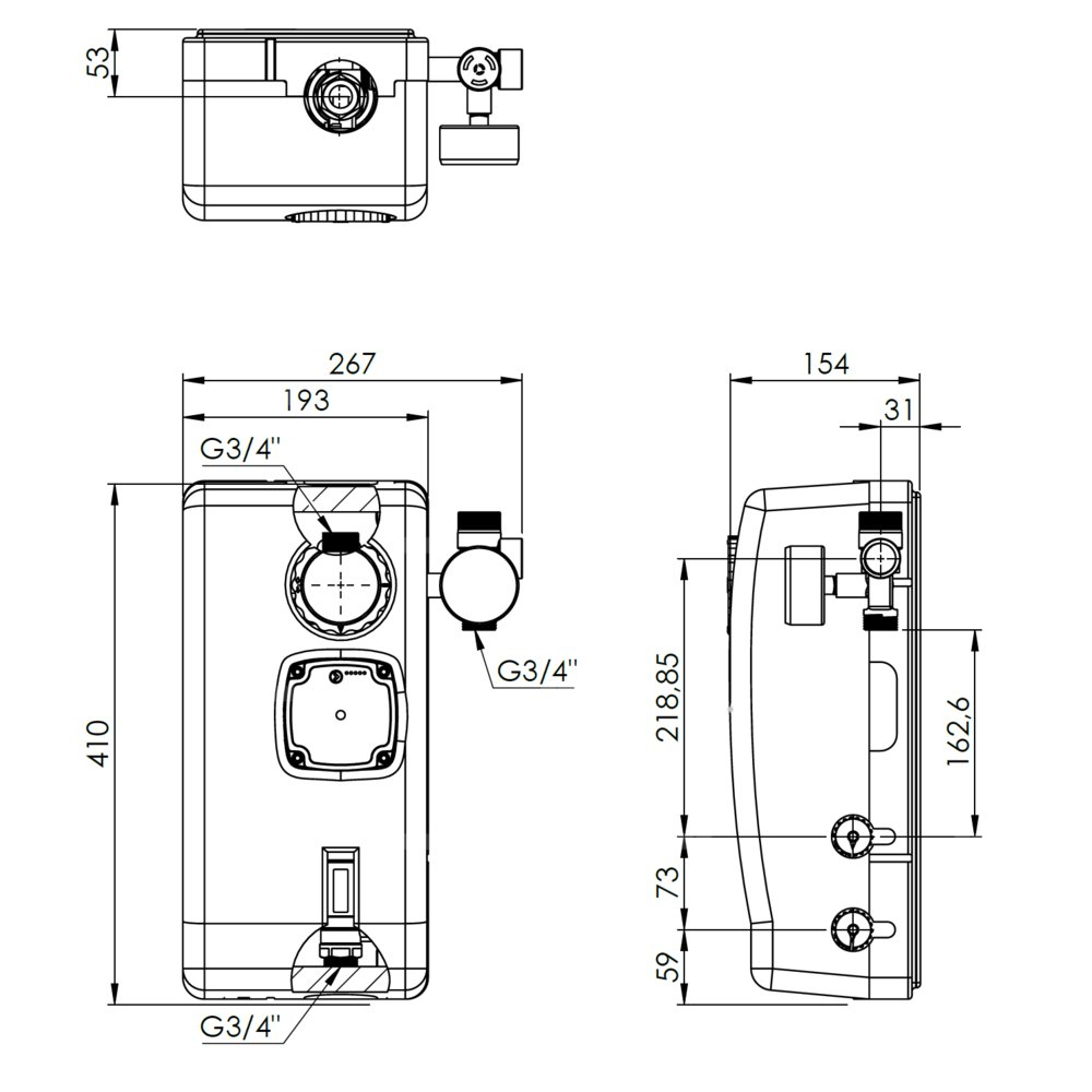 Grupa bezpieczeństwa z zaworem bezpieczeństwa o ciśnieniu otwarcia 6 bar.