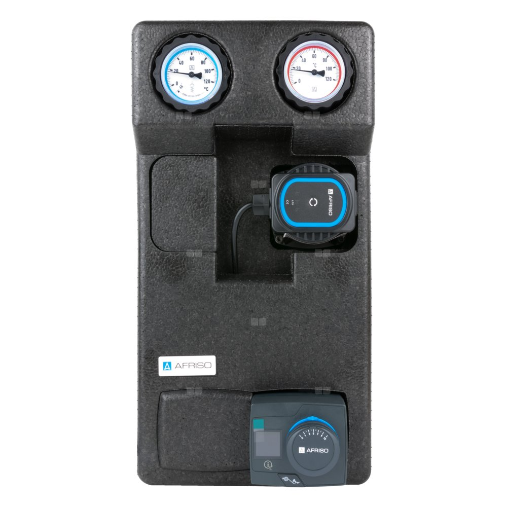 Grupa pompowa AFRISO PrimoTherm 180-2 AP DN 25 3-WM-R Vario GZ x GW 1 1/2'' x 1'', z zaworem mieszającym, z izolacją, z pompą obiegową AFRISO APH 361 25-7/180 mm